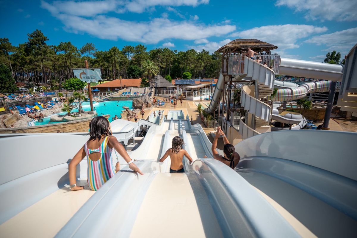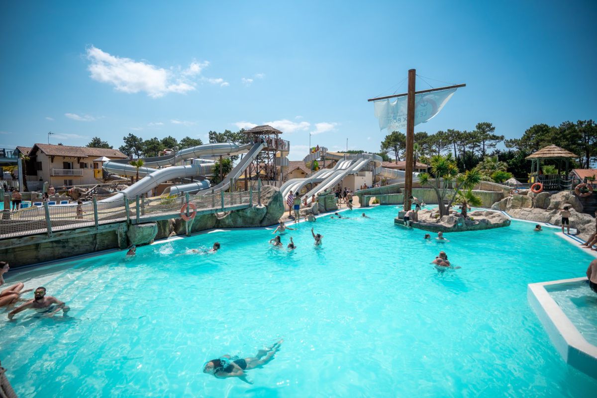 Véritable village de vacances à part entière, le Camping Le Vieux Port réunit tout ce qui fait le succès d'un séjour sur la côte Atlantique. Restaurants, bars lounge, commerces, supérette, espace bien-être, car-wash et location de vélos composent un ensemble complet de services.Son vaste parc aquatique thématique, Pirates Land's, est un véritable univers de loisirs pour petits et grands : piscines, toboggans spectaculaires, rivière à bouées, piscine à vagues, aire aqualudique et machine à surf unique dans un camping 5 étoiles. Les vacanciers alternent entre sensations et détente dans un décor inspiré des Caraïbes.Les hébergements se déclinent selon toutes les envies : mobil-homes, chalets, bungalows, lodges, cabanes sur pilotis ou emplacements spacieux pour tentes et camping-cars, certains dotés de sanitaires privatifs. L'établissement propose également des options haut de gamme avec jacuzzi privatif pour ceux qui souhaitent un confort optimal.Tout au long de la journée, une équipe d'animation passionnée assure un programme varié : tournois sportifs, aquagym, spectacles et soirées à thème. Trois clubs accueillent enfants et adolescents selon leur âge, dans une ambiance bienveillante et dynamique. À la nuit tombée, l'Arena du Vieux Port — la plus grande salle de spectacles des Landes — fait vibrer le domaine avec concerts, cabarets et shows professionnels.