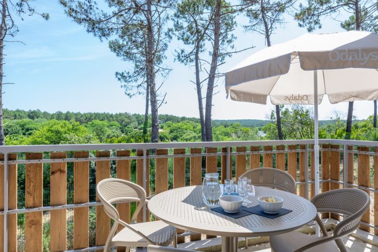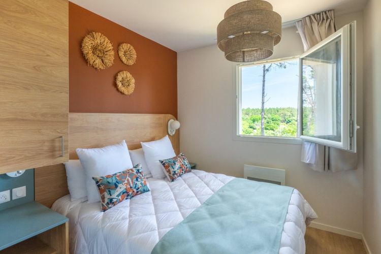La résidence profite d'une orientation ensoleillée et d'une luminosité remarquable, typique des Landes. Dès le matin, la lumière filtre à travers les pins et éclaire les façades modernes du complexe. Les pistes cyclables partent quasiment du pas de la porte et invitent à de longues promenades vers les dunes ou les lacs alentour. À pied ou à vélo, on rejoint aisément les marchés estivaux, les terrasses animées du front de mer et les zones naturelles environnantes.