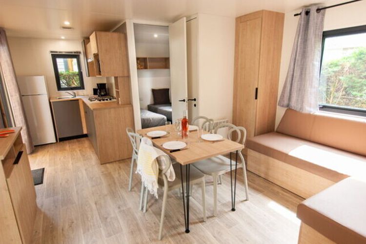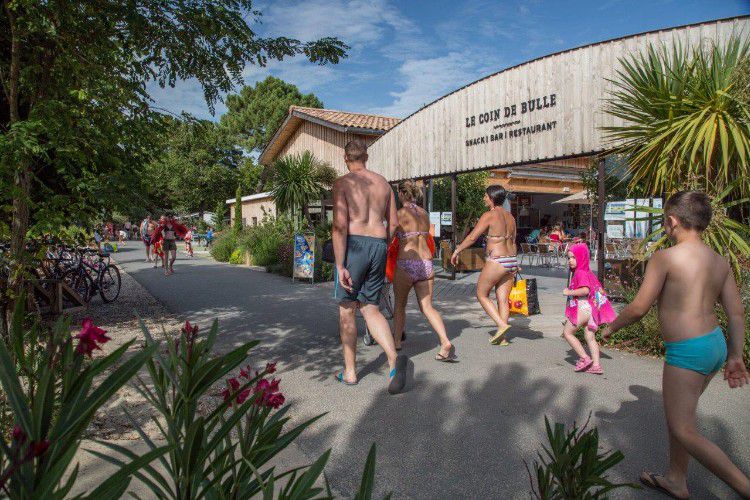 Pensé pour répondre à toutes les attentes, le camping met en avant un large choix d'équipements. L'espace aquatique se démarque par ses bassins diversifiés et ses espaces de détente, tandis que le spa avec hammam et bains à remous prolonge les instants de bien-être. Côté pratique, les vacanciers trouvent sur place un restaurant, un bar convivial, un snack et une supérette pour les courses du quotidien. La location de vélos, y compris modèles enfants ou électriques, permet d'explorer facilement les environs grâce au label Accueil Vélo. Le camping met également à disposition une borne de recharge pour véhicules électriques, confirmant sa volonté d'accompagner les vacanciers dans un séjour confortable et moderne.À la belle saison, le camping s'anime pleinement avec un calendrier d'activités sportives, des clubs enfants dynamiques et des soirées festives où se succèdent concerts et spectacles. Les espaces de restauration battent leur plein, et l'ambiance prend des airs de village de vacances rythmé par l'énergie estivale. Aux intersaisons, l'atmosphère s'adoucit : le spa et les piscines couvertes deviennent des refuges parfaits pour se relaxer, tandis que les promenades à vélo ou sur la plage gagnent en tranquillité. Ce contraste entre vitalité estivale et douceur automnale permet à chacun de trouver la formule qui correspond à son envie de séjour.