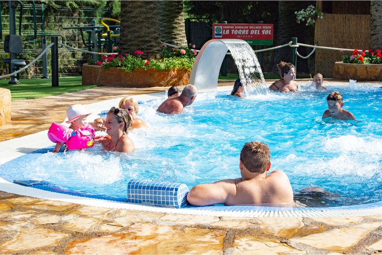 Au sein du Camping La Torre del Sol, les vacanciers disposent d'une offre très complète d'infrastructures et de services. Le cœur du domaine est son vaste complexe aquatique, composé de plusieurs bassins (dont un bassin pour les enfants), de jacuzzis, cascades, zones de balnéo, spa, sauna et hammam. L'aménagement est pensé pour offrir détente et plaisir à tous les âges. Les hébergements comprennent des mobil-homes et des bungalows confortables, adaptés aux familles, possédant terrasse privée et espace extérieur. Le domaine accueille divers points de restauration (restaurants à la carte, pizzerias, snacks, bars, glacier, beach bar) afin de varier les plaisirs culinaires sans jamais devoir quitter le camping. Pour votre confort, un supermarché bien achalandé, un dépôt de pain, des commerces de proximité, une laverie, un service de location de vélos, WiFi dans les zones communes et divers services complémentaires (blanchisserie, location de kit bébé, casiers sécurisés, station de recharge pour véhicules électriques) sont disponibles directement sur place. Les animations rythment la saison : en journée, des ateliers créatifs, clubs enfants (BabyClub, MiniClub, JuniorClub selon les tranches d'âge) et des activités sportives ; en soirée, des spectacles, concerts, soirées dansantes et projections de films assurent une ambiance festive et conviviale. Le camping propose aussi de nombreuses installations sportives : terrains multisports (tennis, volley-ball, pétanque, basket), terrain de squash, mini-golf, terrain de foot, skate-park, aire de tir à l'arc, espaces fitness (cours de yoga, aérobic, Zumba en haute saison).