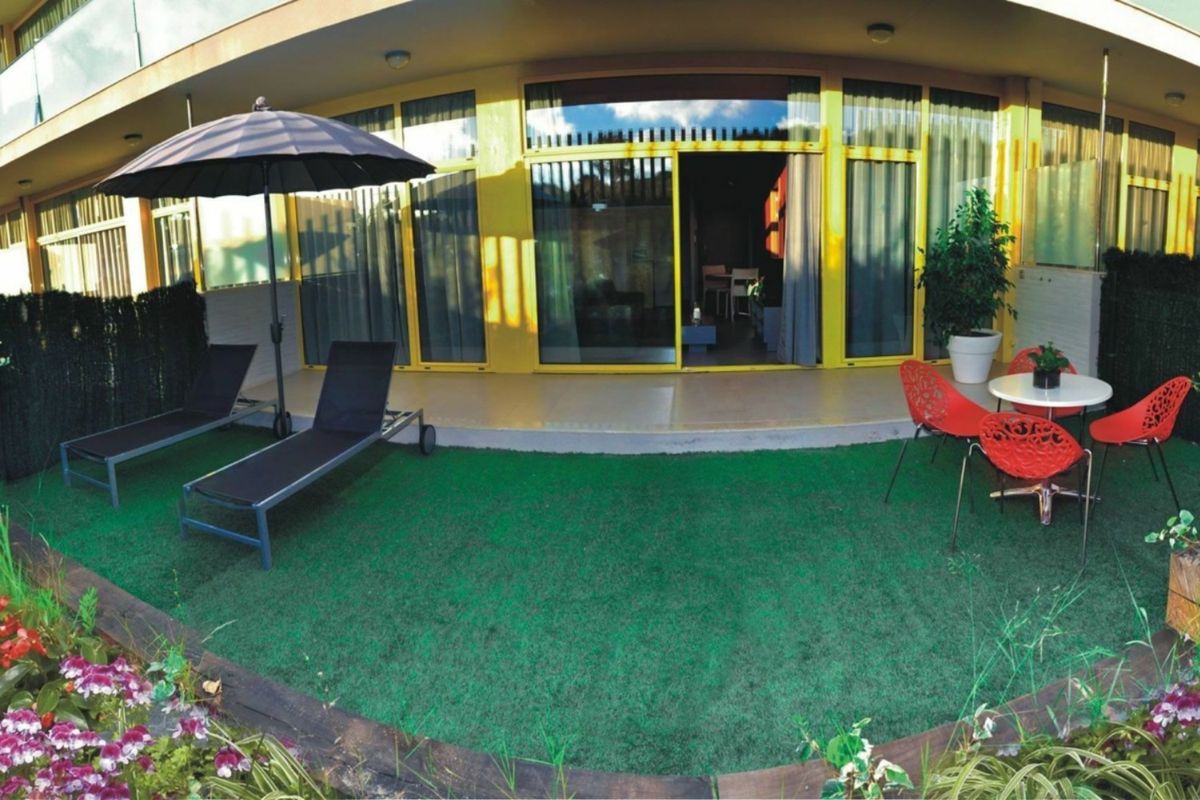 Apolo Suites se présente comme un ensemble d'appartements touristiques modernes, conçus pour offrir un séjour confortable et fluide à Salou. Le complexe s'organise autour de plusieurs bâtiments à l'architecture contemporaine, favorisant une ambiance paisible tout en conservant une vraie convivialité. Les hébergements se déclinent en différentes configurations afin de répondre aux besoins des couples comme des familles. Vous disposez de studios fonctionnels ou d'appartements plus spacieux intégrant un espace salon et des chambres séparées, permettant à chacun de profiter de son intimité. Les suites accueillent aisément de petits groupes comme des familles nombreuses, avec des espaces pensés pour le quotidien. Chaque logement comprend un coin cuisine équipé pour préparer vos repas en toute autonomie, ainsi qu'une salle de bain privative et des équipements favorisant le confort sur la durée. Les intérieurs climatisés s'ouvrent sur une terrasse ou un jardin privatif, prolongeant les moments de détente en extérieur. Le complexe propose également des installations communes appréciées, telles qu'une piscine extérieure accompagnée d'un espace dédié aux enfants, un solarium aménagé, des zones de loisirs et une aire de jeux. Une salle de sport, des services pratiques et une réception attentive complètent l'ensemble. Les animaux sont acceptés, facilitant les séjours avec vos compagnons, et un stationnement est accessible pour plus de tranquillité.