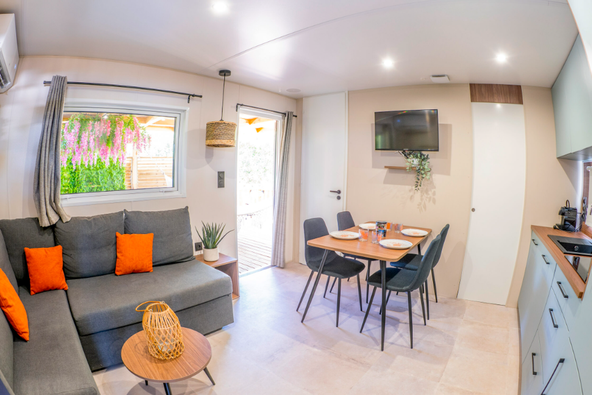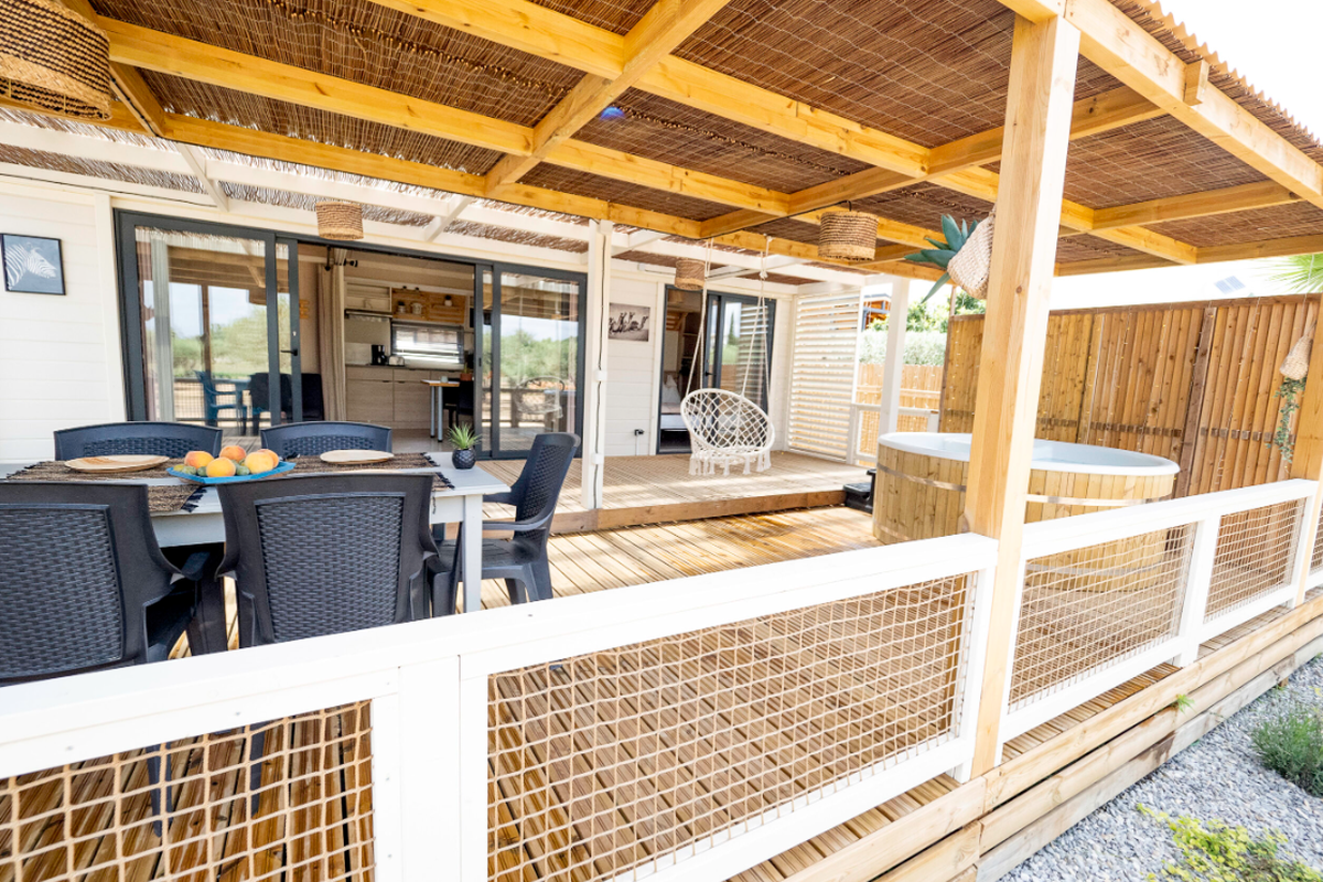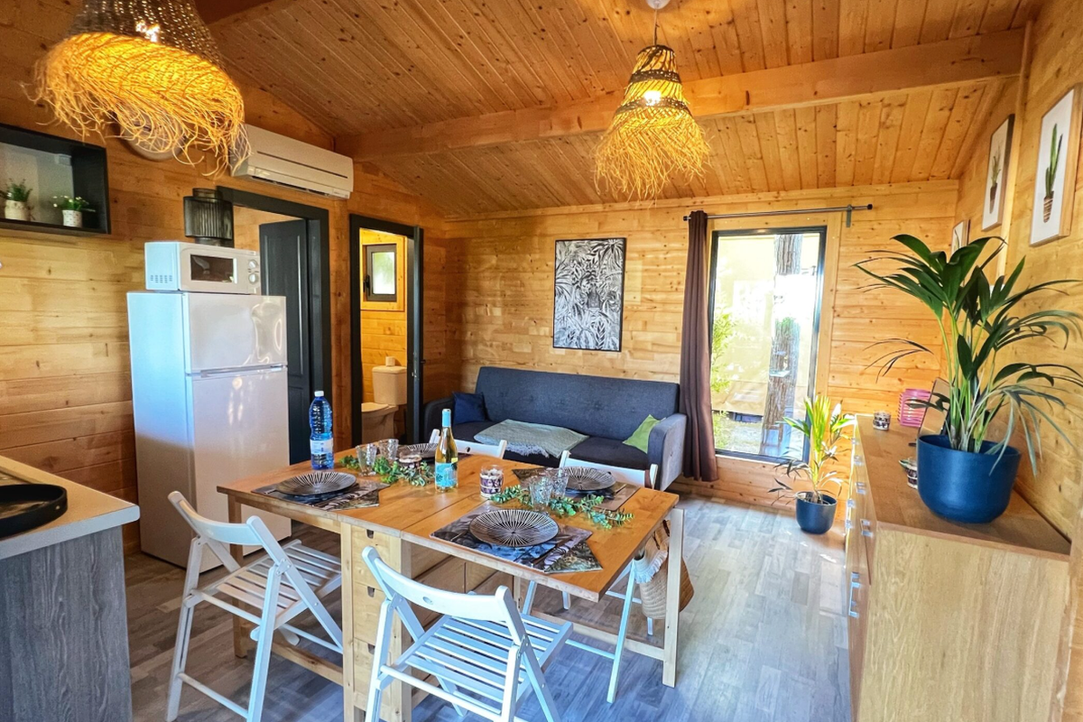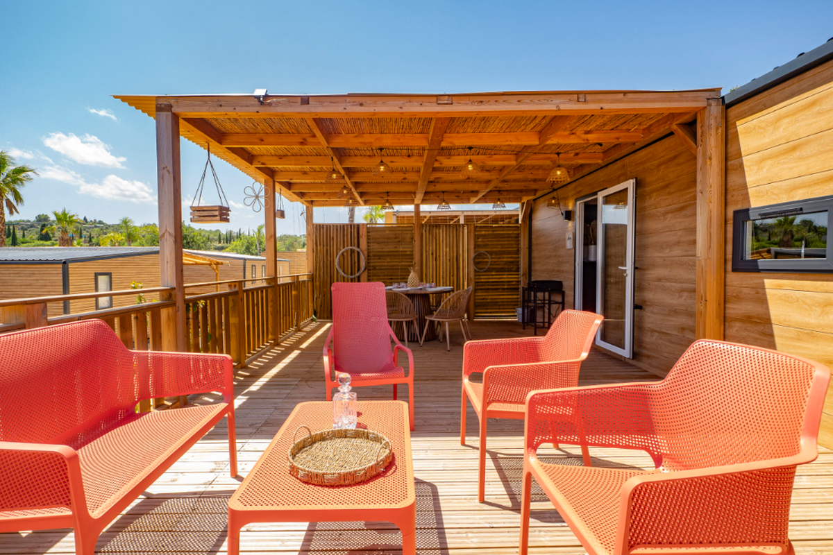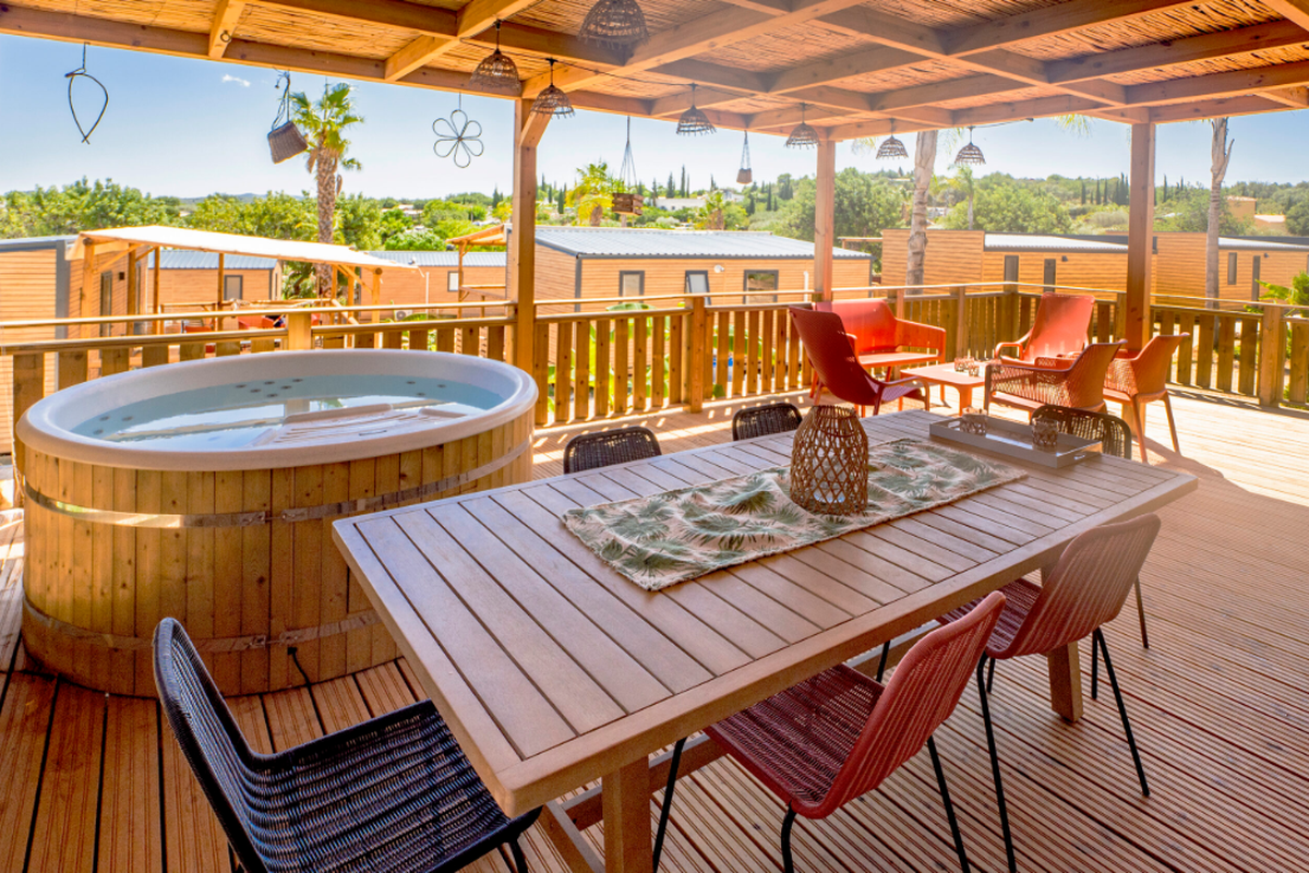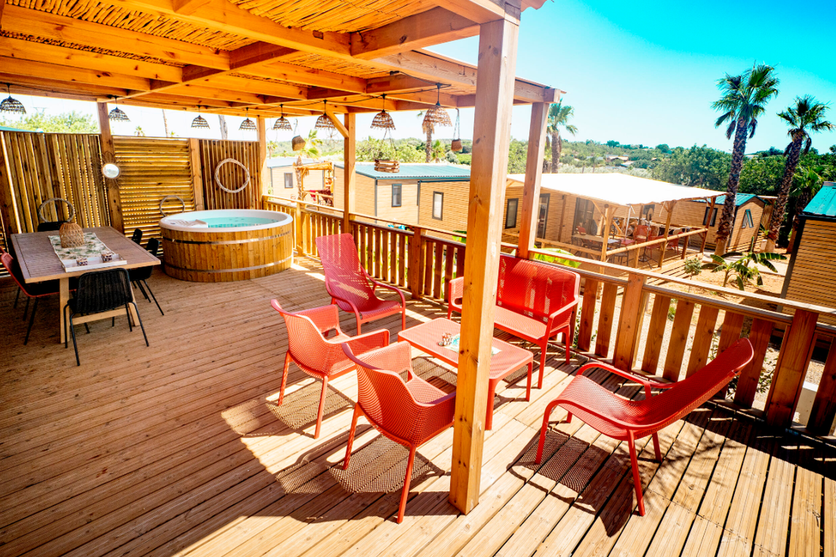 Le Camping L'Orangeraie marie harmonieusement confort moderne, convivialité et ambiance familiale. Ses infrastructures variées séduisent aussi bien les couples que les familles en quête de détente et d'activités.Le cœur du site bat autour de son espace aquatique, véritable havre de fraîcheur composé d'une grande piscine principale, d'un bassin ludique pour enfants et d'une zone de jeux d'eau idéale pour s'amuser en toute sécurité. Certains hébergements bénéficient en outre d'un espace spa privatif ou d'un jacuzzi, parfait pour se ressourcer après une journée d'excursion.Les mobil-homes en bois, accueillant de 4 à 6 personnes, offrent tout le confort nécessaire : cuisine entièrement équipée, salle de bain (parfois double), chambres spacieuses, terrasse couverte et mobilier extérieur pour profiter du climat doux. Pour une expérience plus originale, le camping propose également des chalets “Sol”, un dôme circulaire au design insolite ainsi que des lodges thématiques qui mêlent charme, nature et originalité.En haute saison, le camping s'anime au rythme d'un programme d'activités varié : cours d'aquagym, tournois sportifs, ateliers créatifs, spectacles, soirées dansantes, concerts en plein air et animations pour les enfants. Côté restauration, le restaurant et le snack-bar ravissent les papilles avec une cuisine méditerranéenne simple et savoureuse, tandis que le mini-marché, la blanchisserie, la location de vélos, le Wi-Fi et les terrains multisports (pétanque, tennis, beach-volley, ping-pong) complètent une offre pensée pour des vacances sans contraintes.