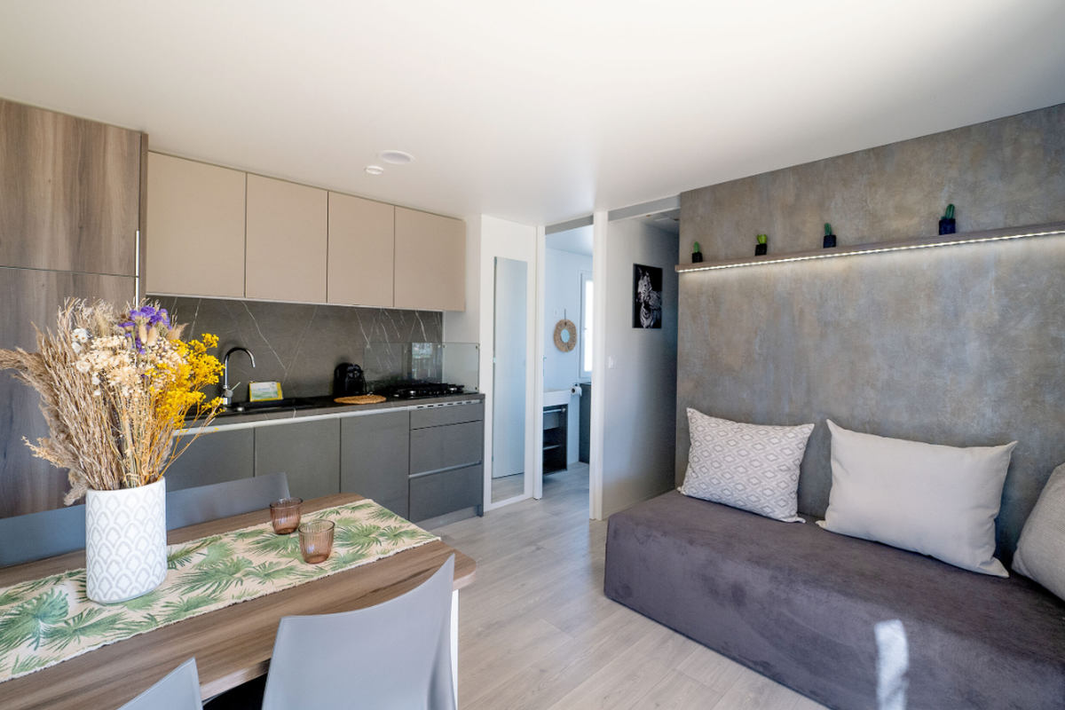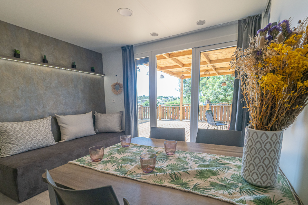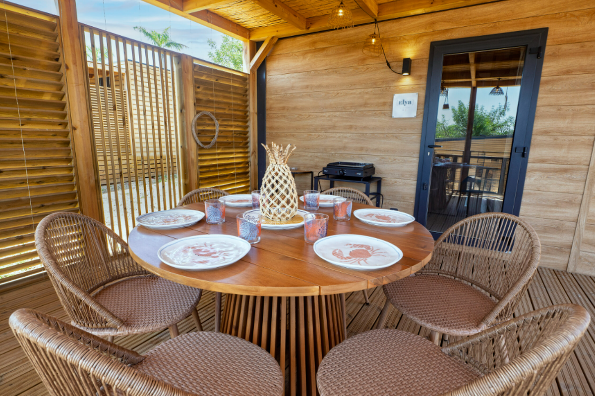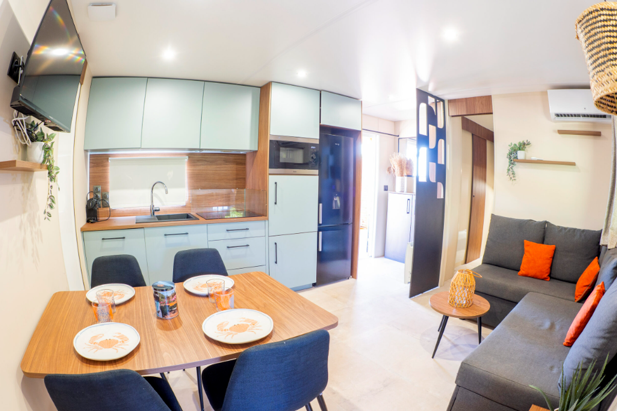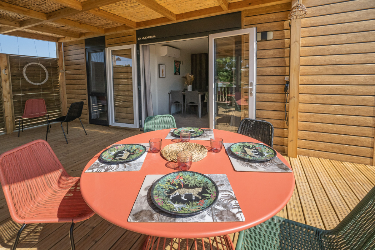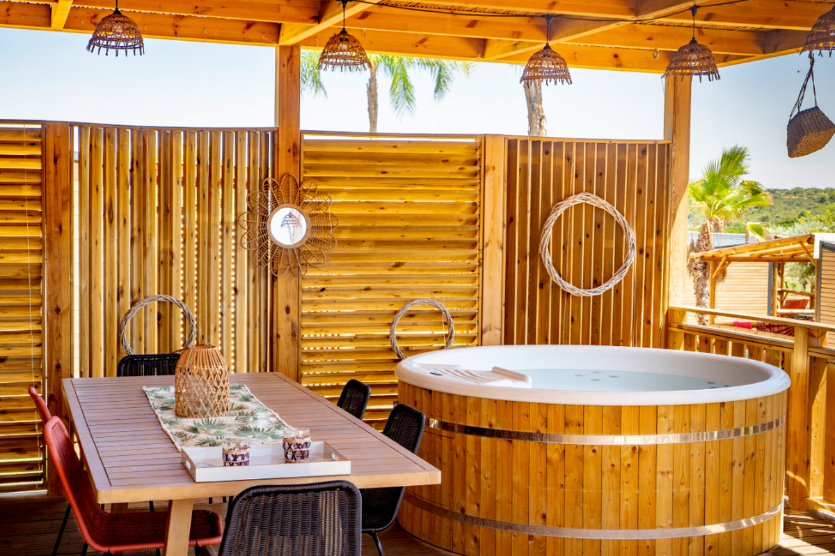 Le Camping L'Orangeraie marie harmonieusement confort moderne, convivialité et ambiance familiale. Ses infrastructures variées séduisent aussi bien les couples que les familles en quête de détente et d'activités.Le cœur du site bat autour de son espace aquatique, véritable havre de fraîcheur composé d'une grande piscine principale, d'un bassin ludique pour enfants et d'une zone de jeux d'eau idéale pour s'amuser en toute sécurité. Certains hébergements bénéficient en outre d'un espace spa privatif ou d'un jacuzzi, parfait pour se ressourcer après une journée d'excursion.Les mobil-homes en bois, accueillant de 4 à 6 personnes, offrent tout le confort nécessaire : cuisine entièrement équipée, salle de bain (parfois double), chambres spacieuses, terrasse couverte et mobilier extérieur pour profiter du climat doux. Pour une expérience plus originale, le camping propose également des chalets “Sol”, un dôme circulaire au design insolite ainsi que des lodges thématiques qui mêlent charme, nature et originalité.En haute saison, le camping s'anime au rythme d'un programme d'activités varié : cours d'aquagym, tournois sportifs, ateliers créatifs, spectacles, soirées dansantes, concerts en plein air et animations pour les enfants. Côté restauration, le restaurant et le snack-bar ravissent les papilles avec une cuisine méditerranéenne simple et savoureuse, tandis que le mini-marché, la blanchisserie, la location de vélos, le Wi-Fi et les terrains multisports (pétanque, tennis, beach-volley, ping-pong) complètent une offre pensée pour des vacances sans contraintes.