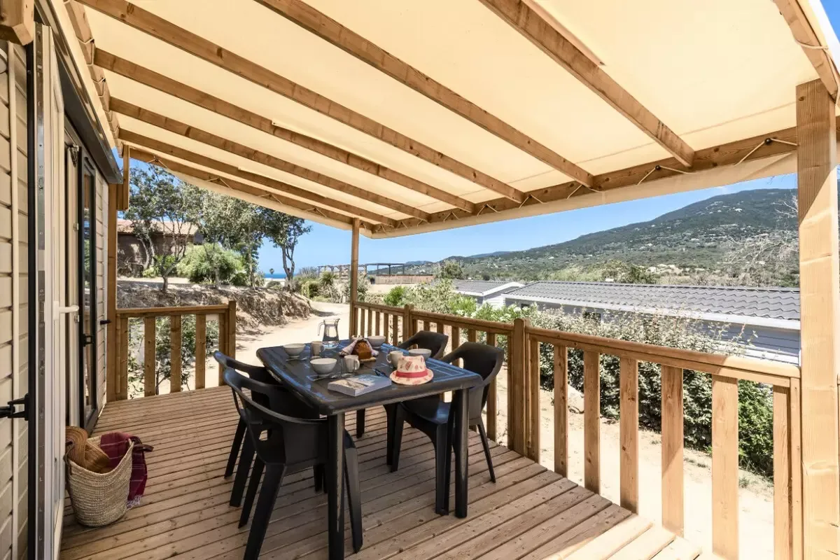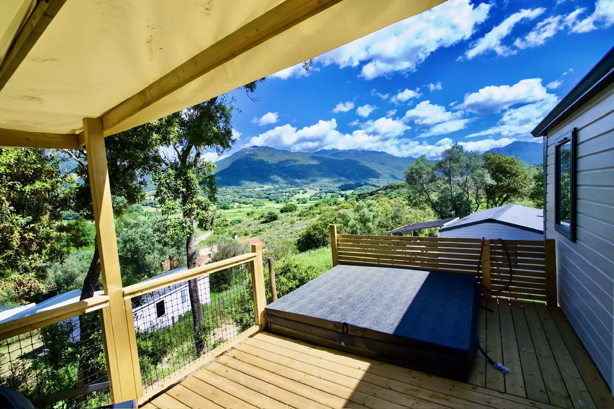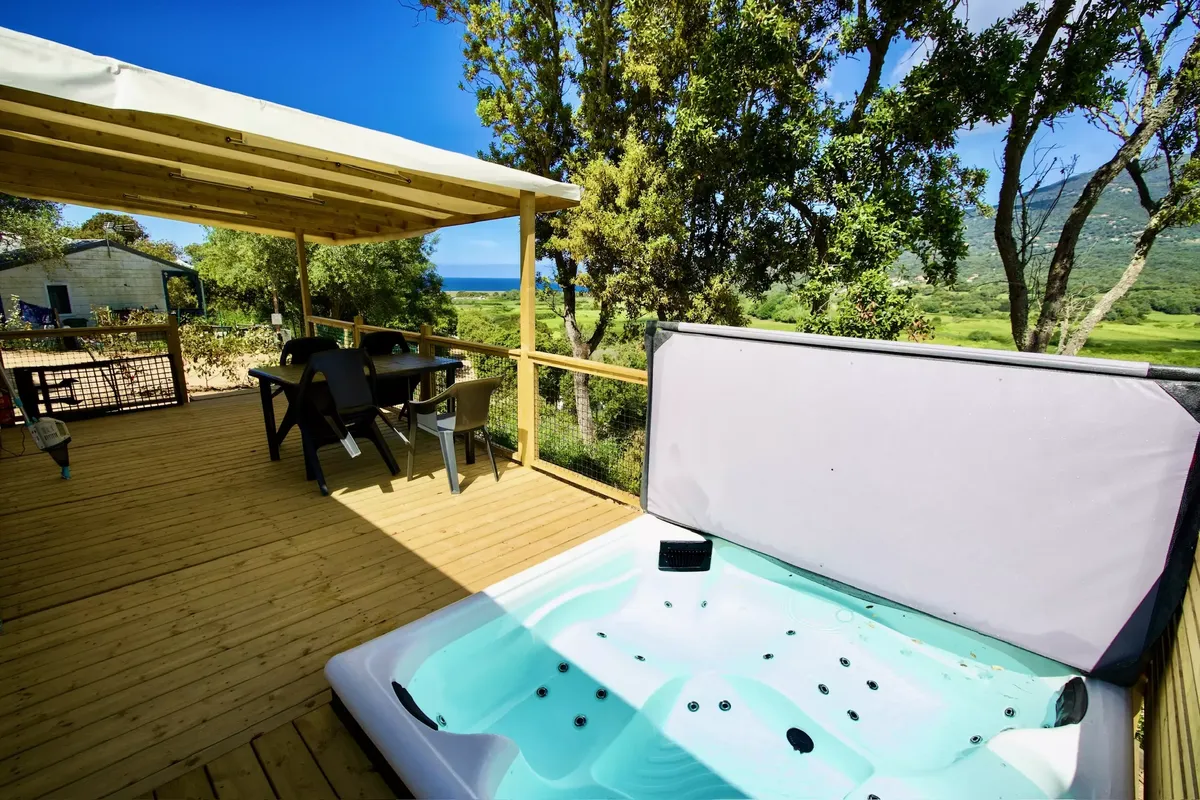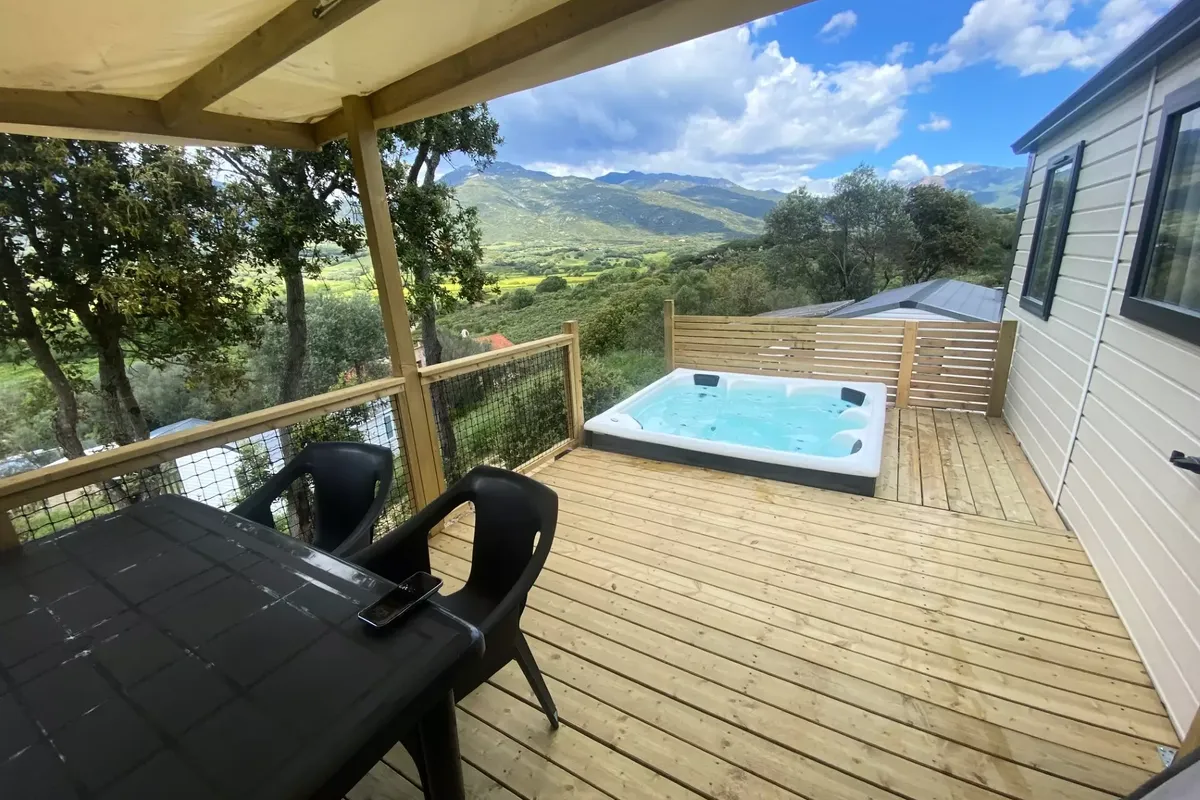 Mobil Home avec Jacuzzi - Terrasse - Prestige - 4 pers. - 29m2 - clim - TV - Animaux admis