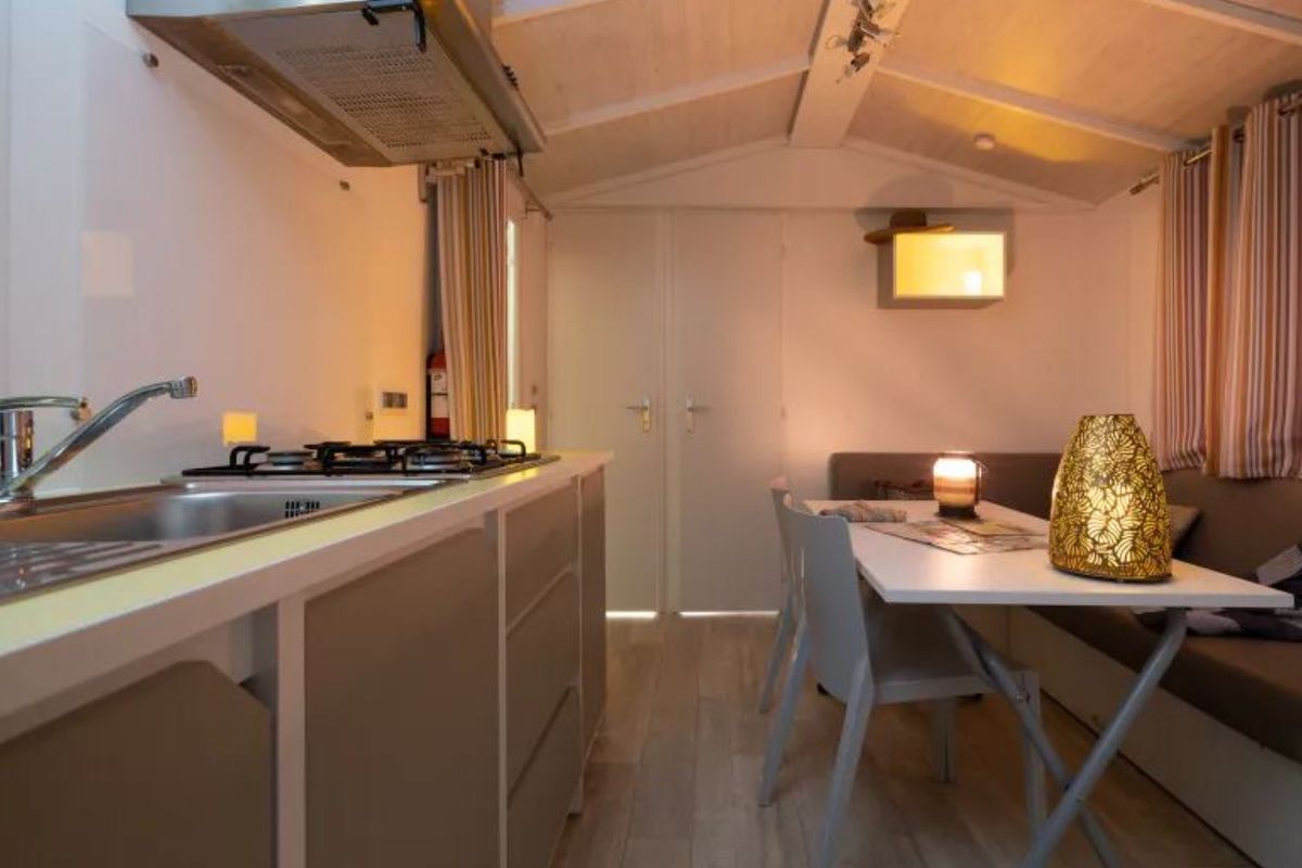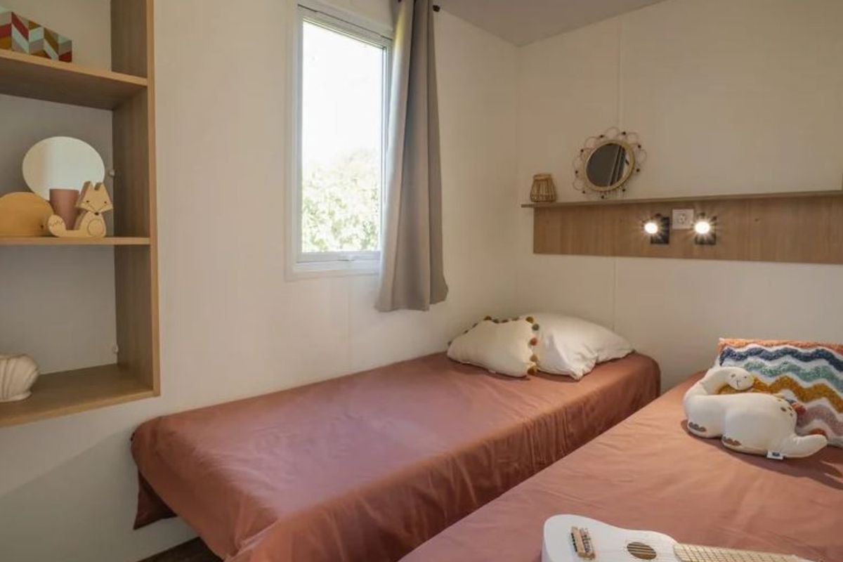 Le Camping Sables D'Or est bien plus qu'un simple lieu de séjour : c'est un véritable village de vacances. Son attraction phare, Pirates World, est un espace aquatique thématisé autour des pirates, avec toboggans, piscine à vagues, rivière à bouées et zones de jeux pour enfants. L'ambiance y est festive et conviviale, parfaite pour partager des moments en famille. Sur place, vous profitez d'une gamme complète de services : plusieurs restaurants et bars, boulangerie, supérette, salon de coiffure et espace bien-être avec sauna et hammam. Les hébergements, confortables, se déclinent en mobil-homes et chalets entourés de verdure, offrant un cadre paisible et reposant. En saison, les animations se succèdent : tournois, clubs enfants, soirées à thème, chasses au trésor ou spectacles. Les plus jeunes plongent dans l'univers des pirates, pendant que les adultes se détendent autour d'un concert ou d'une soirée dansante.