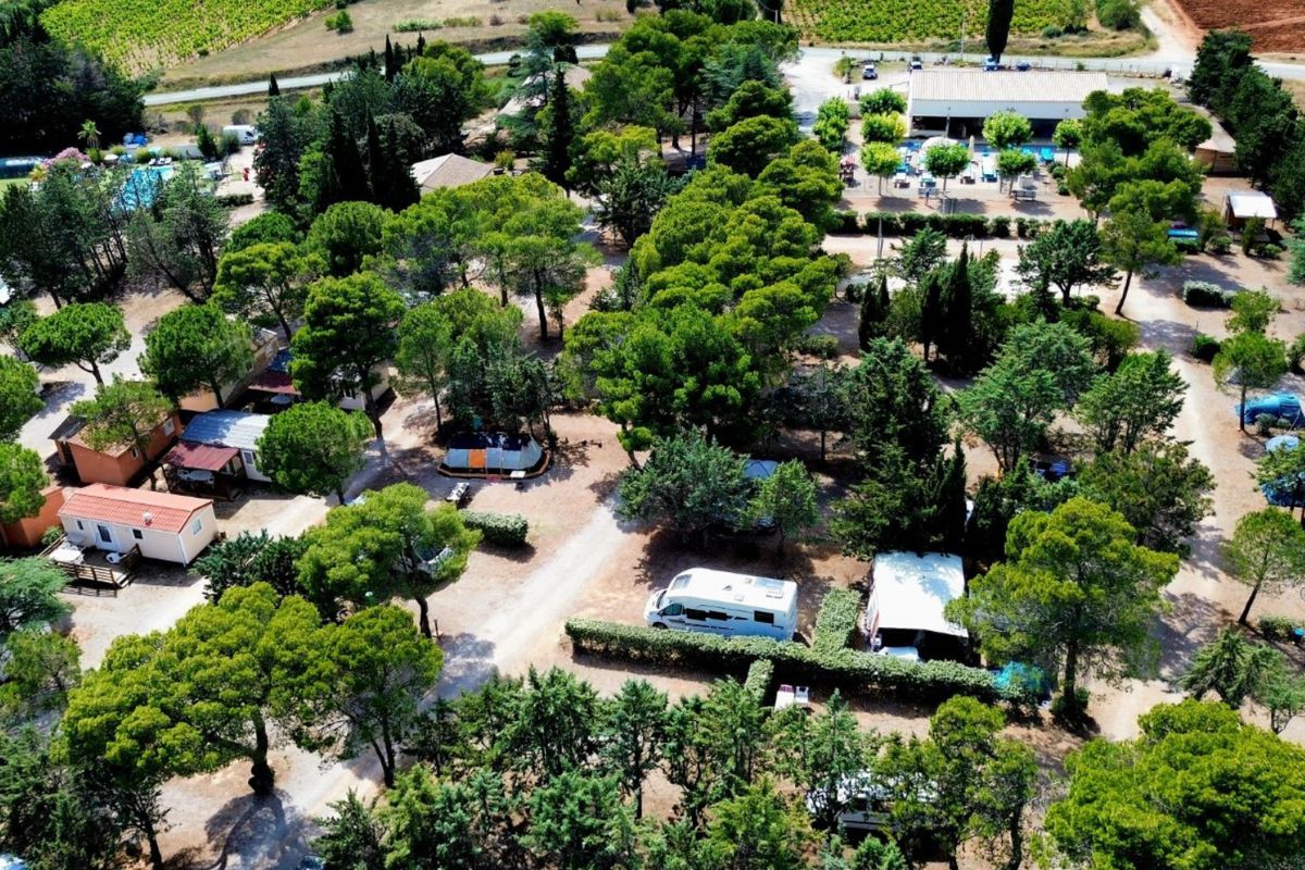 Le Camping Le Pinada s'implante à Fabrezan, dans le département de l'Aude, en plein cœur du Pays Cathare. Vous évoluez au sein d'une vaste pinède de plus de mille hectares qui entoure l'établissement et invite à la déconnexion totale. Le site bénéficie d'un emplacement stratégique, à quelques minutes de la sortie Lézignan-Corbières de l'autoroute A61 : vous accédez ainsi facilement aux grands axes tout en séjournant dans un havre de calme. Le Pinada se situe à peu de distance entre Narbonne et Carcassonne, ce qui permet d'allier plaisirs de la mer méditerranéenne et découvertes patrimoniales. Aux alentours, le parc naturel de la Narbonnaise en Méditerranée, la réserve africaine de Sigean, ainsi qu'une multitude d'abbayes et de châteaux cathares structurent le paysage touristique régional. Le village de Fabrezan lui-même, typique des Corbières, se trouve à deux pas du camping : il dévoile ses ruelles anciennes, sa tour médiévale et ses vignes environnantes. Ce double contexte (nature et patrimoine) confère au séjour une dimension authentique et apaisante.