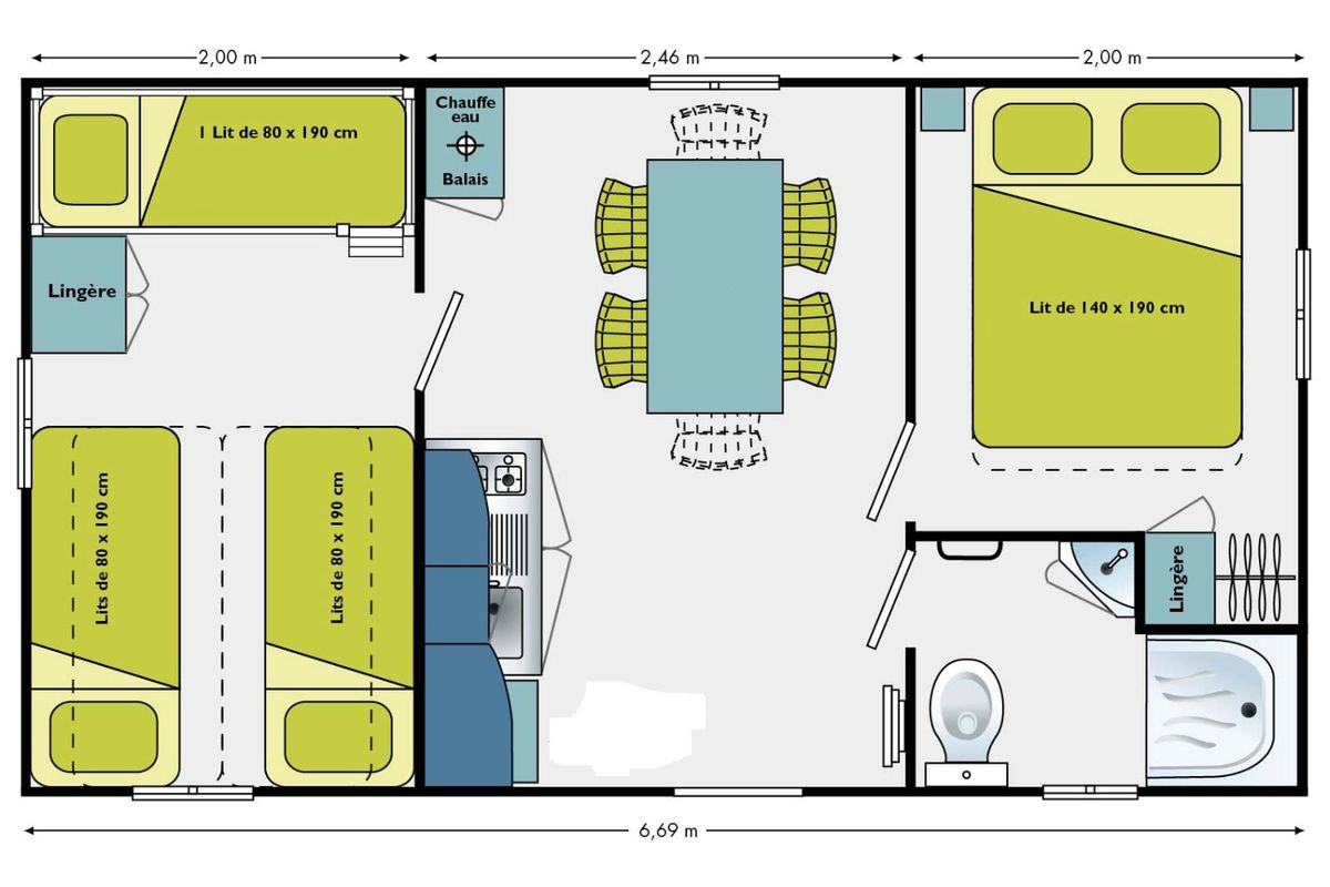 3 chambres, 31m²
