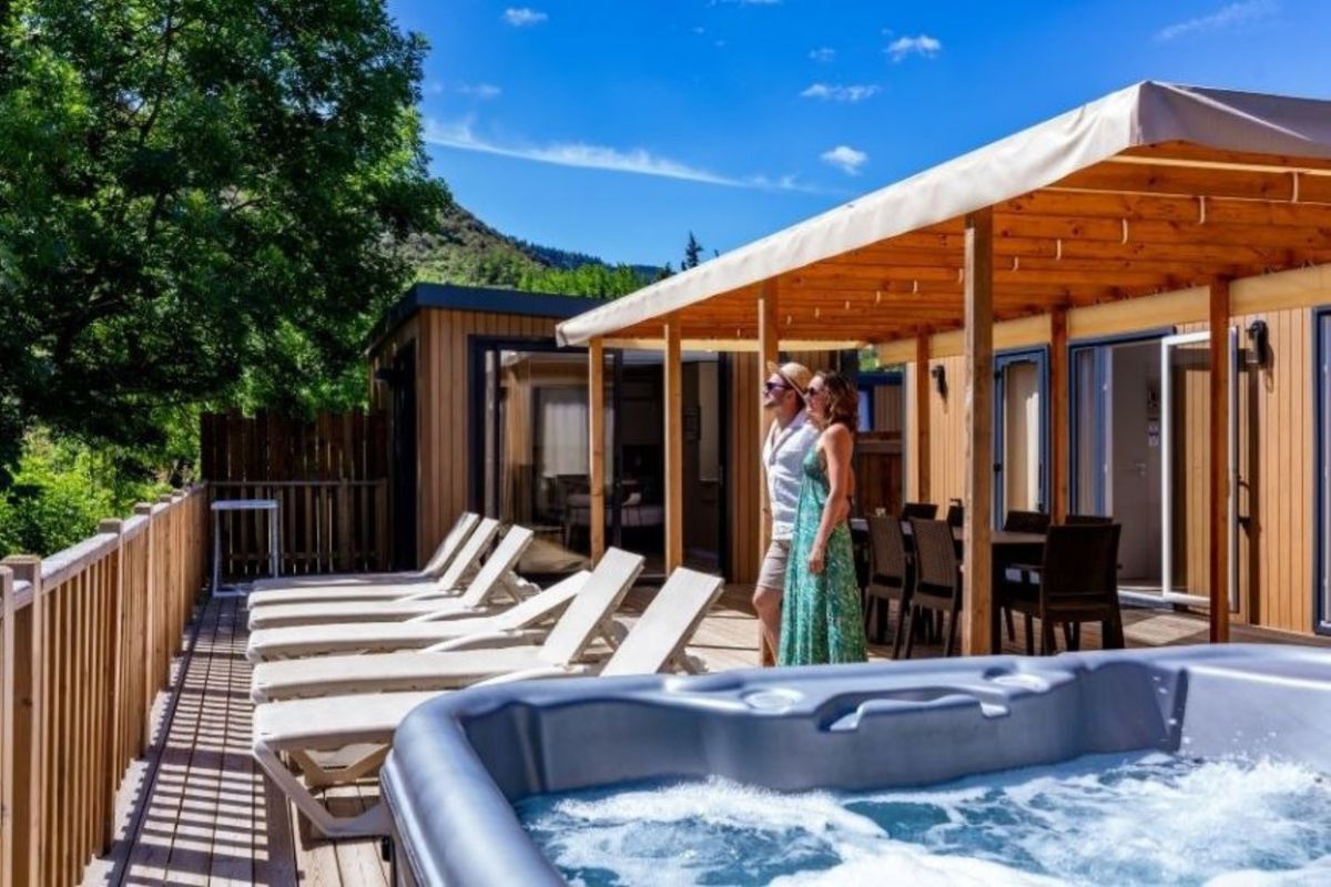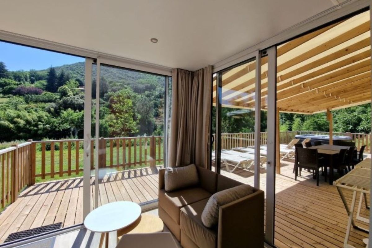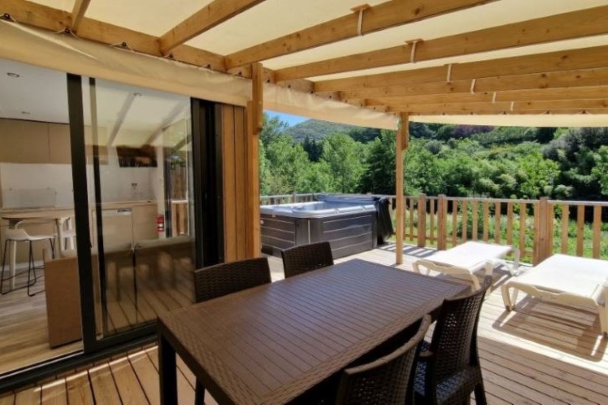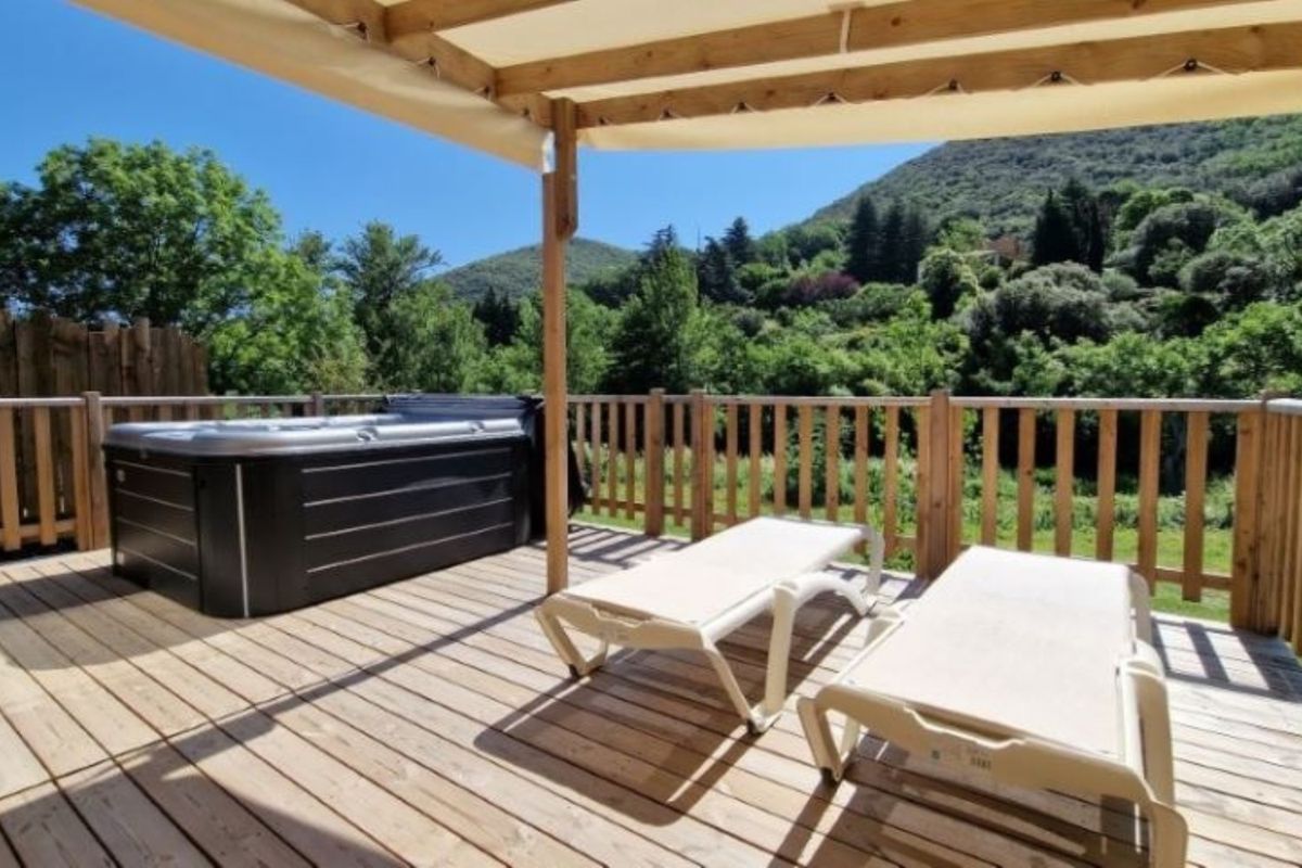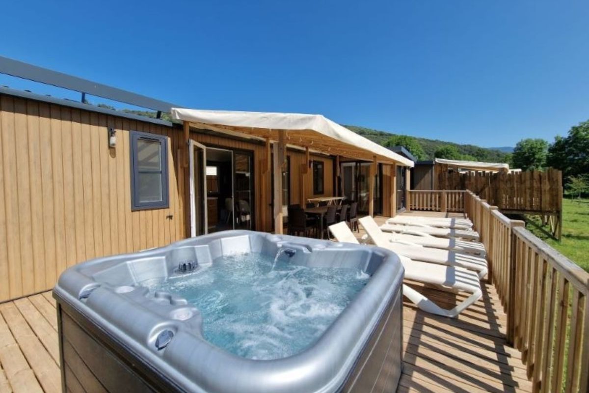 Mobil home avec spa privatif - Terrasse - 6 pers. - 40m2 - clim - TV - Animaux admis