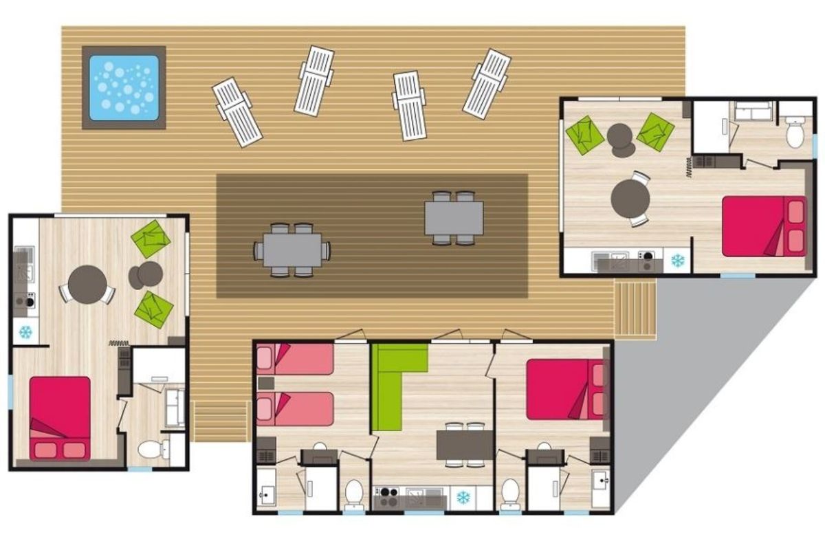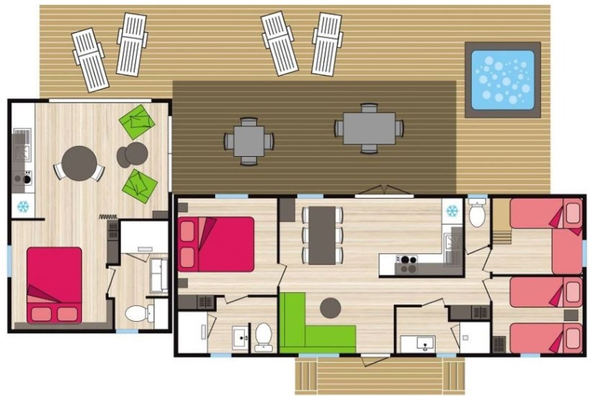 Mobil home + SPA - Terrasse - 9 pers. - 75m2 - clim - TV - Animaux admis