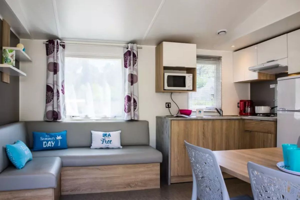 Équipements spécifiques de l'établissement Au cœur du Domaine de Bréhadour, l'espace aquatique attire petits et grands avec ses piscines intérieure et extérieure, ses toboggans et ses zones de détente bordées de transats. Pour prolonger les moments de farniente, de vastes terrasses invitent à profiter du soleil. Le camping dispose également d'un service de location de vélos, d'un accès Wi-Fi, d'une laverie et même de bornes de recharge pour véhicules électriques. Les hébergements se déclinent en plusieurs gammes : mobil-homes modernes, lodges confortables, emplacements spacieux et roulottes insolites. Certains logements « Privilège » offrent des prestations supérieures avec terrasses aménagées et équipements complets pour des vacances tout confort. Au printemps, le site séduit par son calme et la beauté de son environnement fleuri ; en été, il se transforme en véritable lieu de vie, animé du matin au soir par une équipe dynamique. À l'automne, il retrouve sa sérénité et se prête à de belles découvertes autour du patrimoine et de la nature guérandaise.