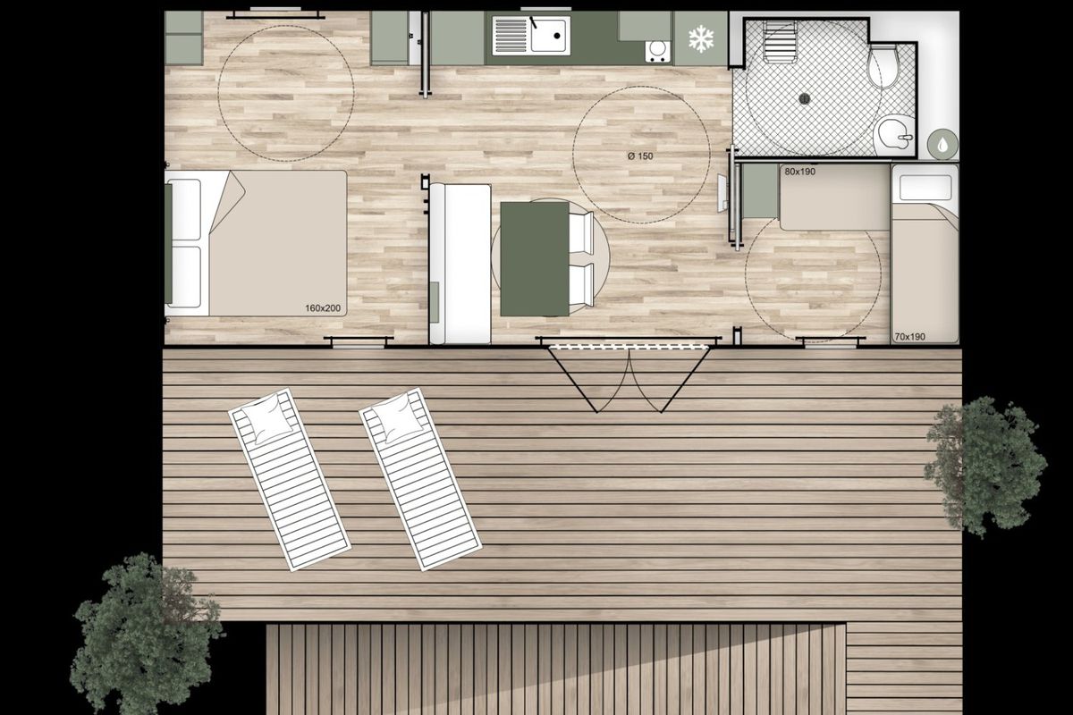 Mobil home - Terrasse - 2 pers. - 20m2 - clim - TV