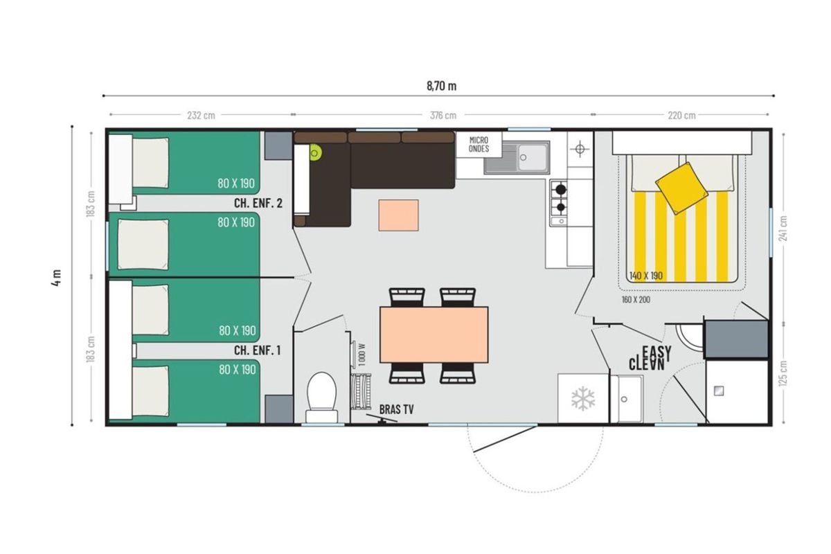 Mobil home - Terrasse - 4 pers. - 36m2 - clim - TV