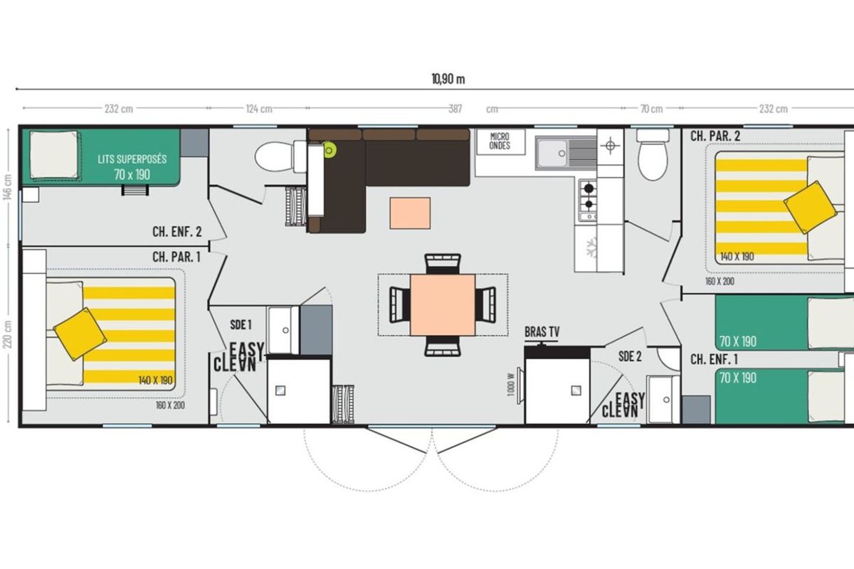 Mobil home - Terrasse - 10 pers. - 40m2 - clim - TV - Animaux admis