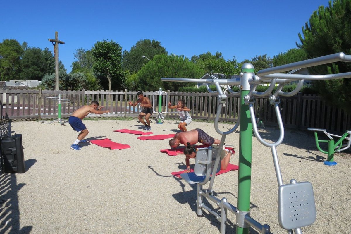 Le camping Le Both d'Orouet propose une piscine extérieure où vous pourrez profiter des joies de la baignade. Les plus petits pourront s'amuser en toute sécurité dans la pataugeoire qui les accompagne. Les enfants trouveront également leur bonheur avec une grande aire de jeux et un terrain de multi-sports pour des matchs de football ou de hand-ball. Pour les plus grands, un espace fitness en plein air est à disposition ainsi qu'un parcours de mini-golf.