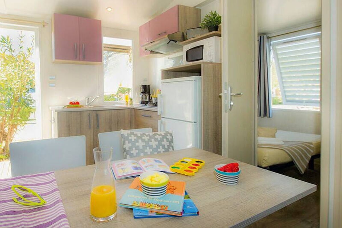 Pensé pour les vacances en famille, le Camping Le Zagarella déploie un large éventail d'équipements adaptés à tous les âges. Son parc aquatique constitue un véritable pôle de loisirs avec bassin extérieur, espace couvert, zones dédiées aux jeux d'eau, toboggans, bain à remous et espaces de détente en plein air. Cet ensemble permet autant de moments dynamiques que de pauses relaxantes. Les différentes gammes de mobil-homes offrent un confort adapté aux envies de chacun : les hébergements Comfort privilégient une ambiance moderne et bien agencée, tandis que la gamme Classic propose des installations simples et agréables pour des vacances tout en convivialité. Vous bénéficiez également de nombreux services utiles au quotidien : location de vélos, bar et snack, petite épicerie, boulangerie, équipements pour bébés, laverie et connexion wifi. Les activités disponibles sur place sont variées et permettent de rythmer les journées : pétanque, fitness, aquagym, salles de jeux, sports collectifs ou encore moments de danse. Les enfants disposent de leurs propres espaces, de clubs d'animation selon les périodes, et d'infrastructures ludiques pour se divertir en toute liberté. Le cadre se prête aussi bien aux séjours reposants qu'aux vacances actives.