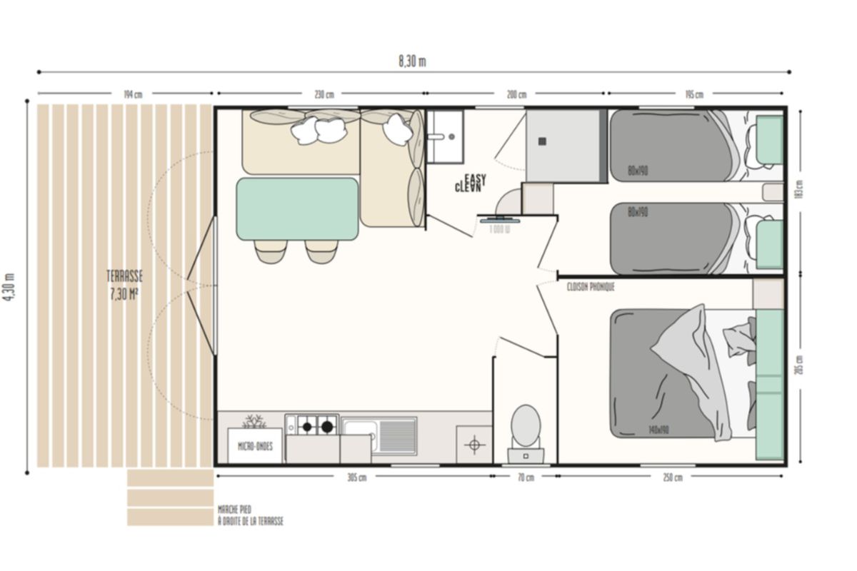 Autre lieu apprécié : La Kabane. Véritable espace de rencontre, elle accueille les vacanciers tout au long de la saison. Vous y prenez un café le matin, un petit déjeuner tranquille, une pause fraîcheur dans l'après-midi ou un cocktail en soirée. Pour les repas, la restauration avec food-trucks permet de manger sur place ou d'emporter facilement. Glaces, boissons fraîches et ambiance détendue complètent l'expérience. Un vrai confort au quotidien, surtout lorsque l'on souhaite profiter du séjour sans contrainte.