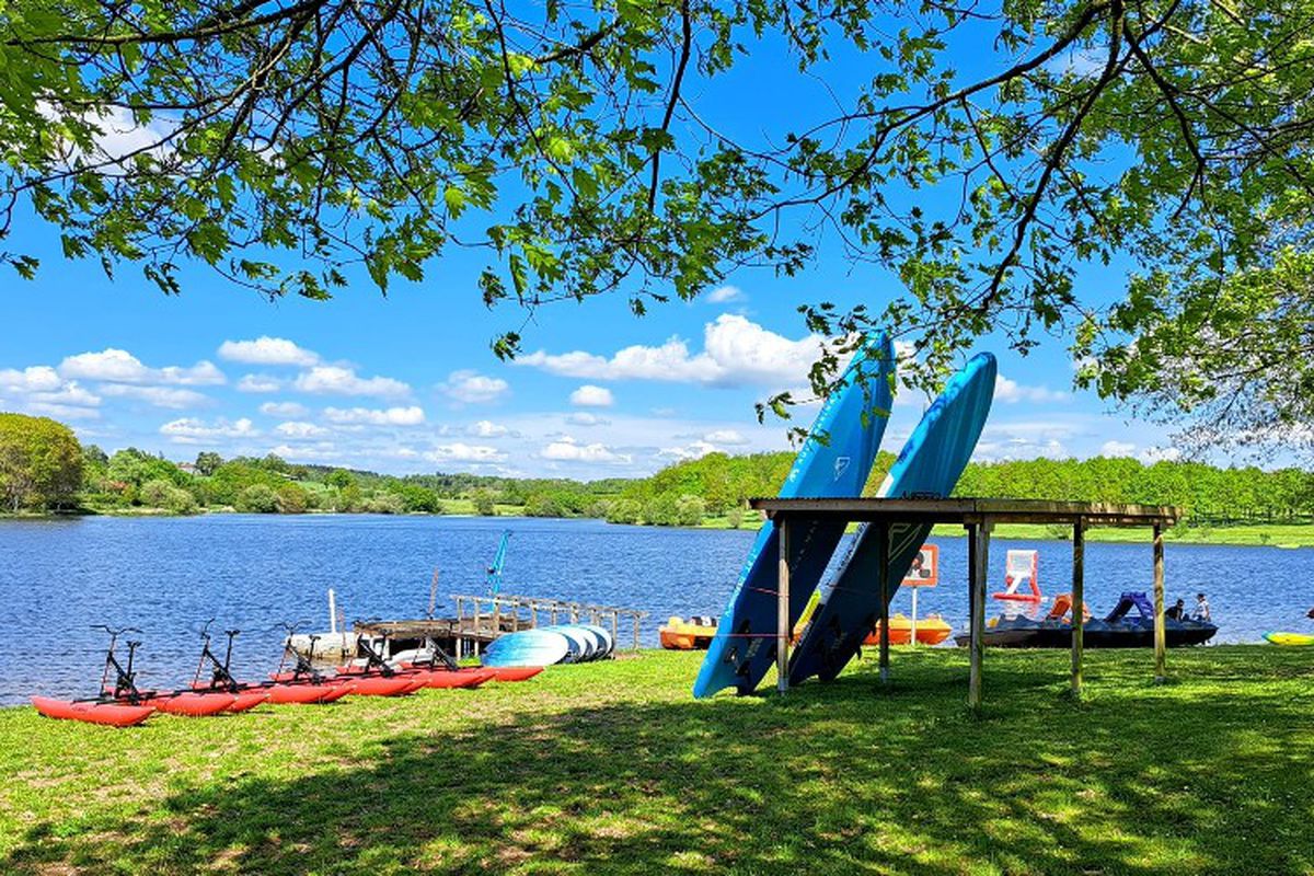 Séjourner au Camping des Lacs permet de profiter pleinement des attraits du lac de Lavaud, véritable cœur de la vie locale. Les activités nautiques, la baignade et les balades autour du plan d'eau rythment les journées dans une ambiance familiale et détendue. Les chemins balisés invitent à la découverte de la région à pied ou à vélo, offrant une immersion dans les paysages naturels de la Charente limousine. Les environs proposent une animation régulière à travers marchés de producteurs, fêtes locales et rendez-vous culturels organisés selon la saison. La gastronomie régionale complète l'expérience avec des spécialités issues du terroir, à découvrir dans les villages voisins. Les amateurs de patrimoine peuvent partir à la rencontre des églises, des petits bourgs et des sites historiques qui racontent l'histoire de ce territoire rural. L'atmosphère générale séduit par son authenticité et son rythme apaisant, idéal pour des vacances ressourçantes.