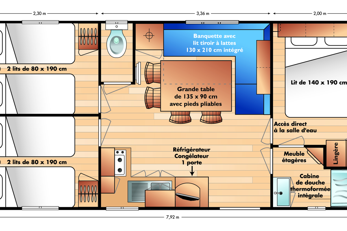 Mobil home - 3 pers. - 22m2 - clim - TV - Animaux admis