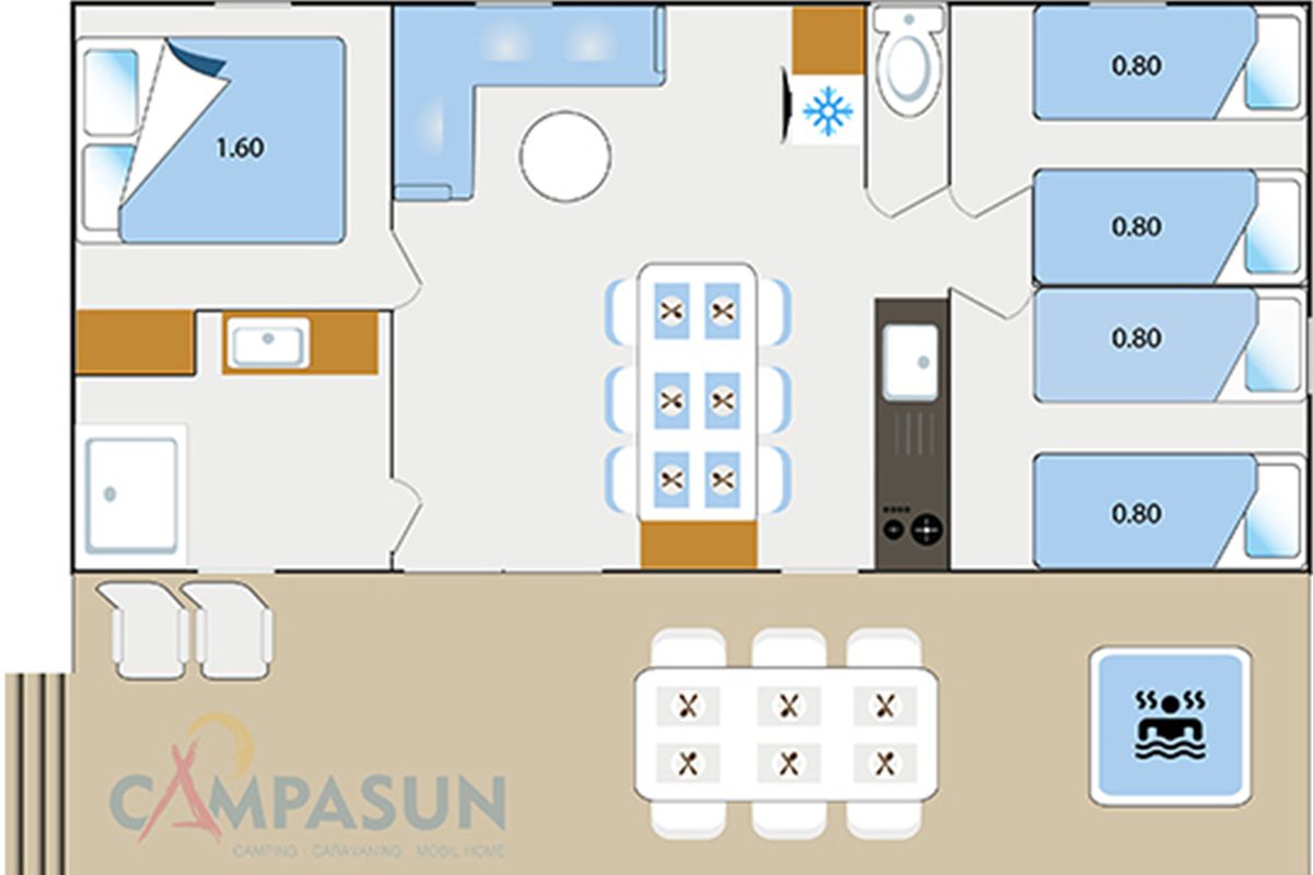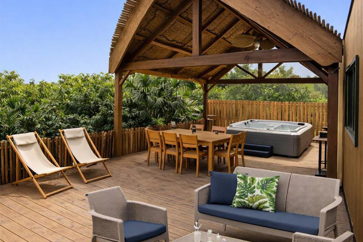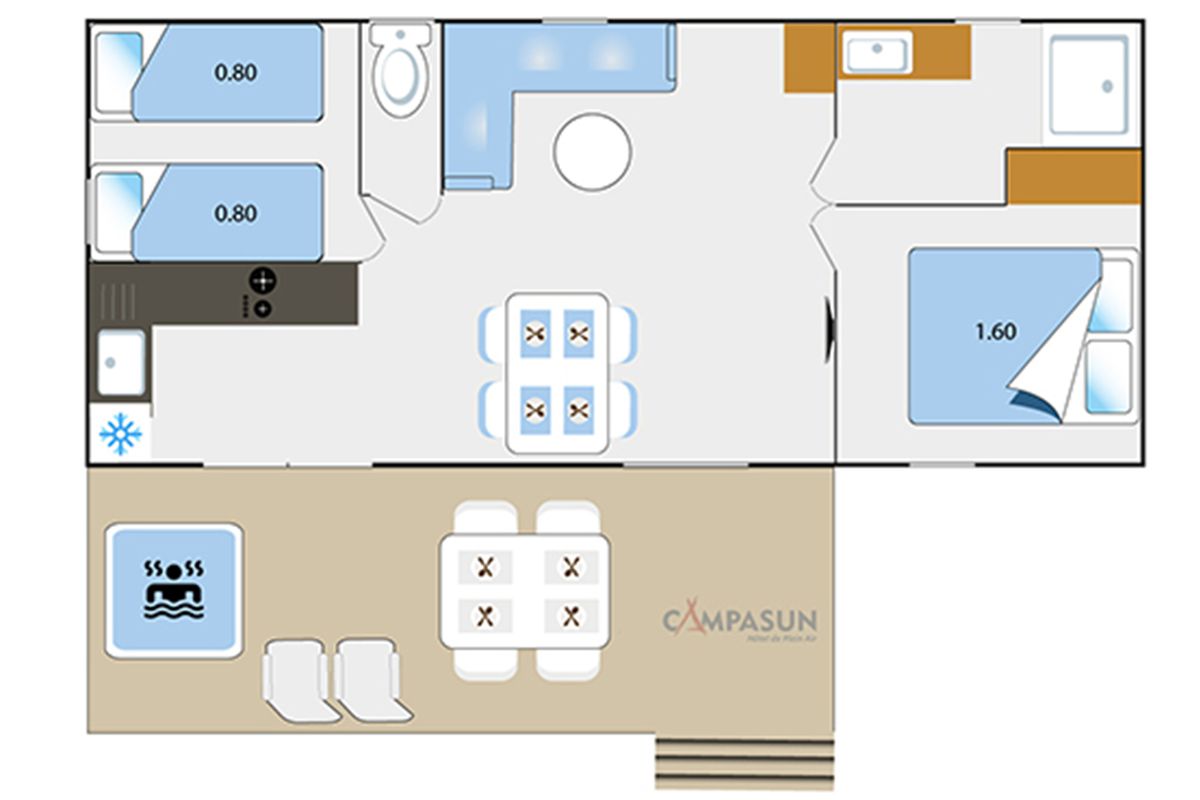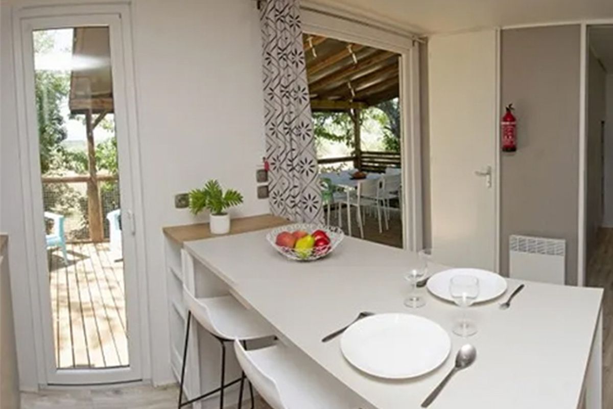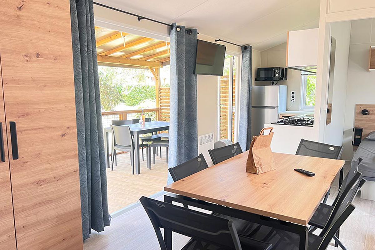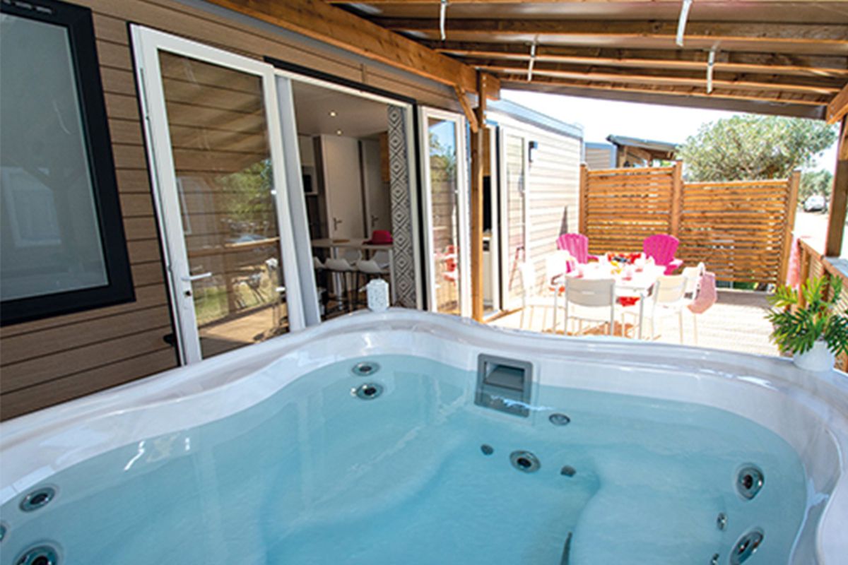Mobil home avec jacuzzi privatif - Terrasse - 6 pers. - 33m2 - clim - TV - Animaux admis