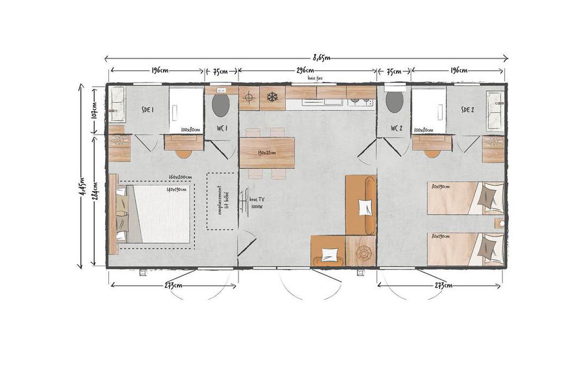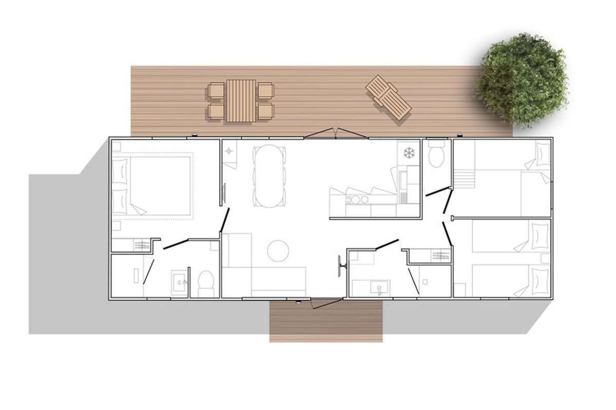Mobil home - sans cuisine - sans sanitaires - 8 pers. - 40m2 - clim - TV - Animaux admis