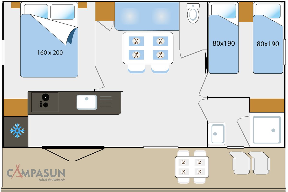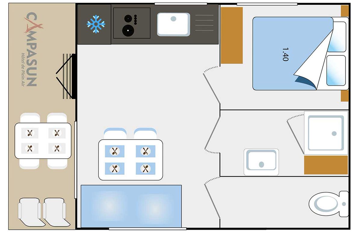 Mobil home - Terrasse - 2 pers. - 17m2 - clim