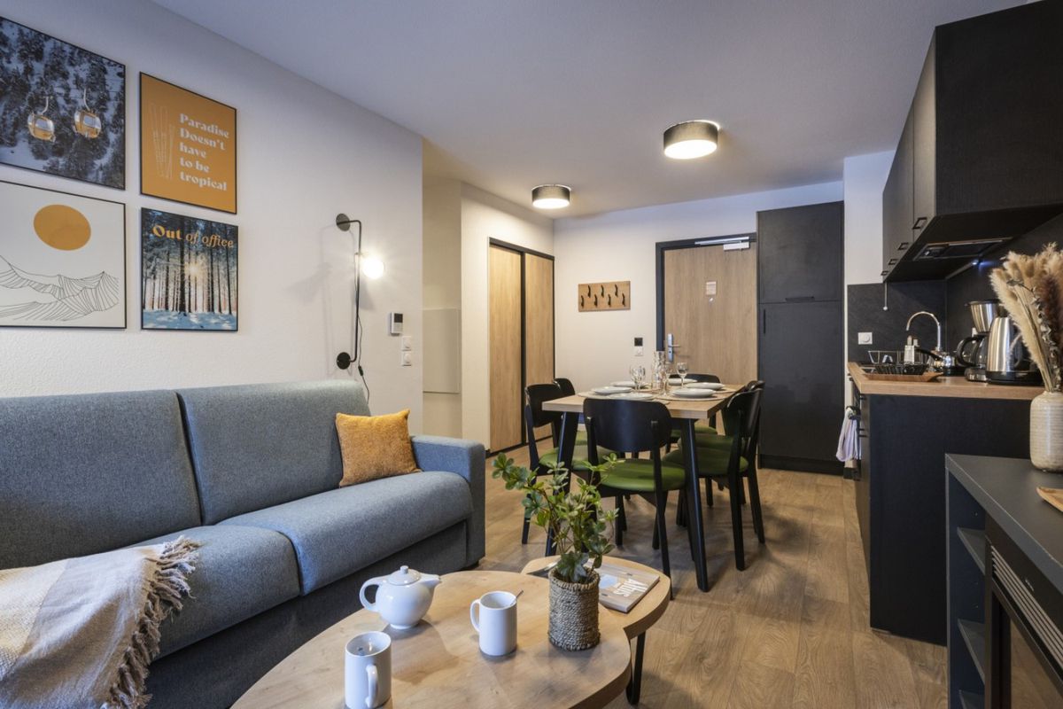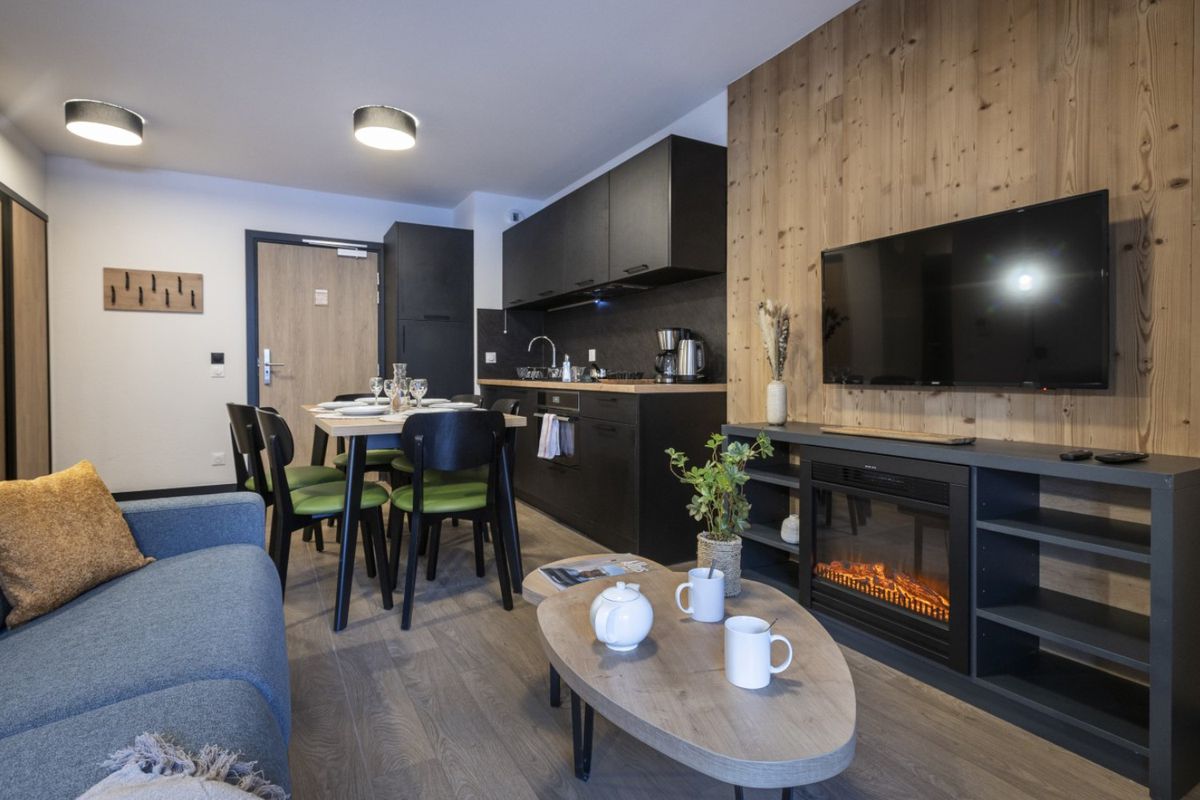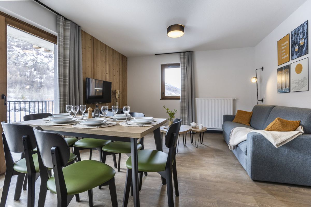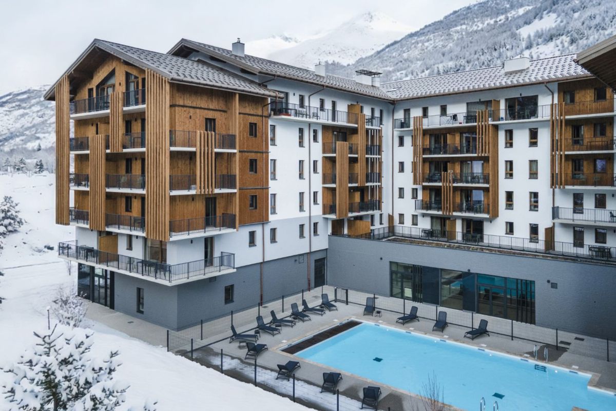 Établissement et services La résidence Serra Neva se compose de plusieurs bâtiments modernes, conçus dans un esprit montagnard, qui s'intègrent parfaitement au décor alpin. Elle propose des appartements fonctionnels et lumineux, certains en duplex, adaptés aussi bien aux familles qu'aux groupes d'amis. Tous disposent d'équipements pratiques pour un séjour autonome et confortable. Les espaces communs invitent au partage : un lounge-bar convivial est à votre disposition, idéal pour prolonger les soirées après une journée de ski. L'établissement propose également un espace bien-être complet avec hammam, sauna et soins relaxants, parfaits pour relâcher les tensions après l'effort. En extérieur, un bassin aquatique accessible en hiver offre un contraste agréable avec la neige environnante. Les équipes d'animation organisent régulièrement des activités ludiques et des soirées à thème qui rassemblent les vacanciers. À proximité immédiate de la résidence, vous trouvez restaurants, bars et commerces de village. Les marchés locaux de la vallée proposent charcuteries artisanales, fromages de montagne, confitures et produits issus de l'agriculture alpine, donnant à vos repas une saveur authentique.