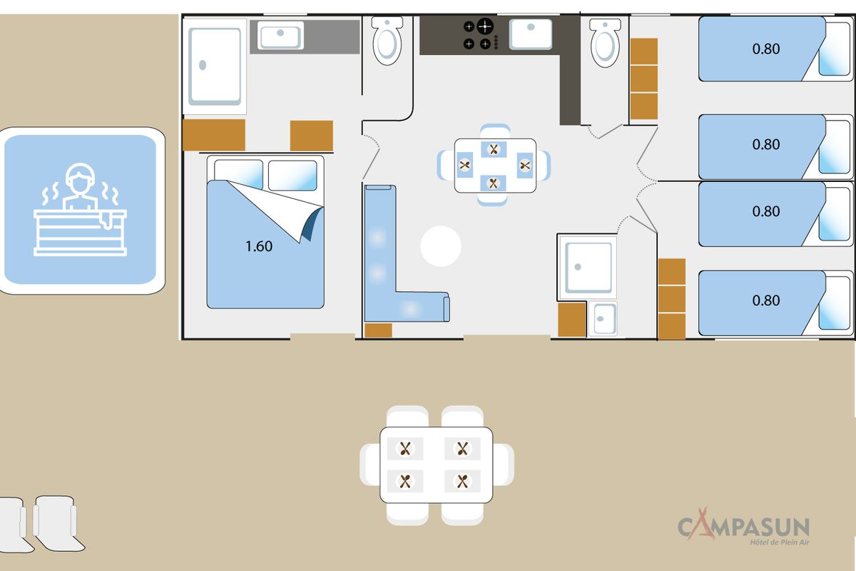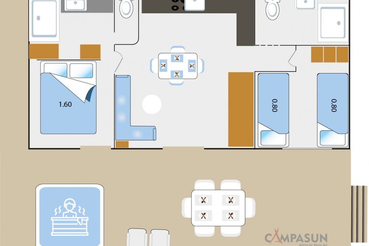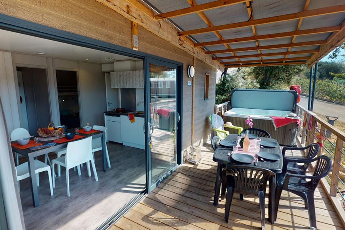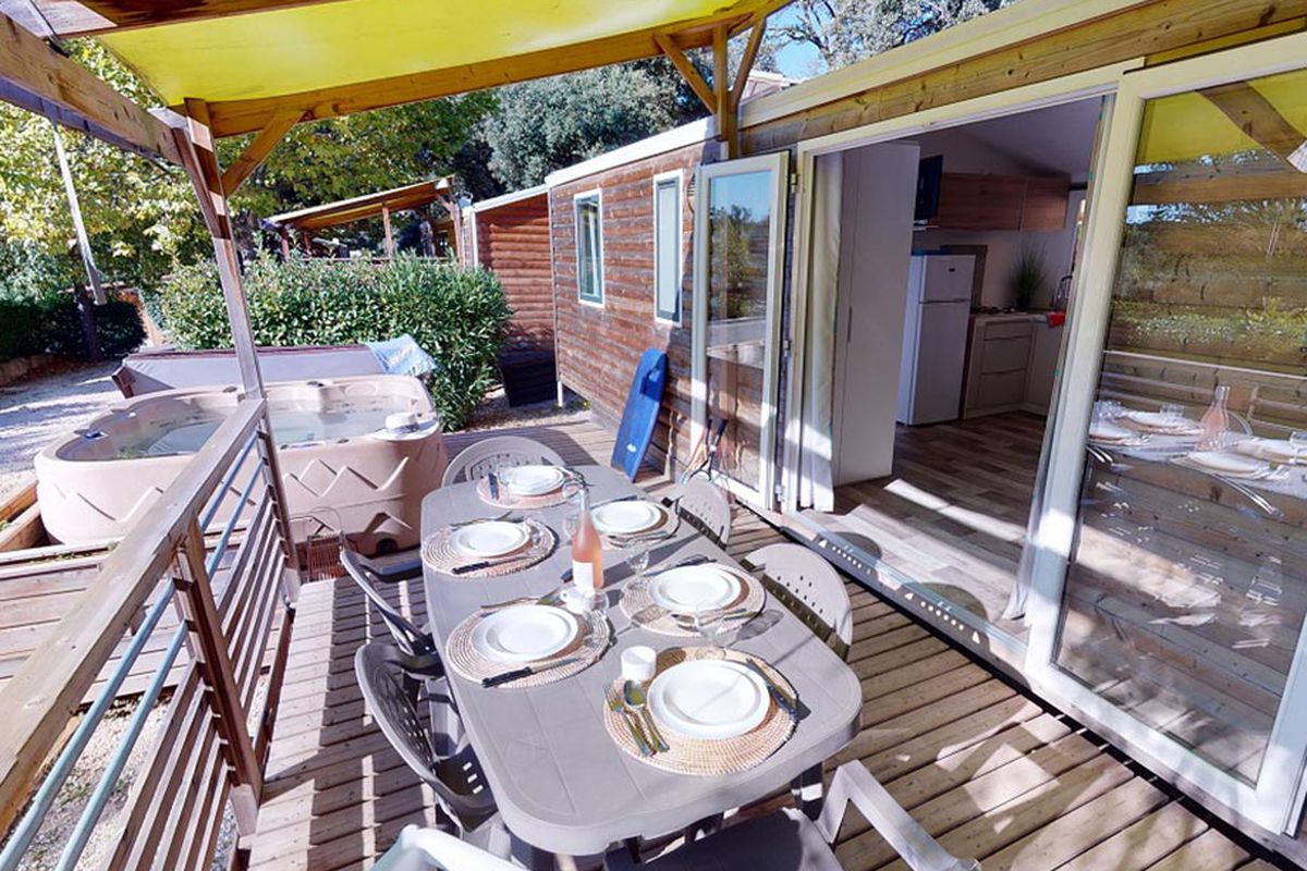 Pensé pour accueillir les familles dans un cadre convivial, le Camping Mas de Pierredon met à votre disposition de nombreux équipements dédiés aux loisirs et au confort. L'espace aquatique occupe une place centrale dans la vie du camping avec une piscine agrémentée de toboggans, d'un espace balnéo et d'un jacuzzi en plein air. Installé à proximité du restaurant panoramique, cet espace invite à profiter pleinement des journées ensoleillées tandis que les plus jeunes s'amusent dans la pataugeoire ou sur les structures gonflables. Durant la période estivale, des animations aquatiques et sportives viennent compléter les possibilités de loisirs et permettent de partager des moments conviviaux en famille. Le camping propose également un large éventail d'équipements sportifs comprenant mini-golf, terrain multisports, court de tennis, tables de ping-pong et terrain de pétanque. Un espace de fitness en extérieur permet de pratiquer une activité physique dans un cadre agréable. Les enfants peuvent participer aux activités du club dédié tandis que les adultes profitent d'activités collectives ou de moments de détente. Les soirées s'animent régulièrement autour de spectacles, concerts ou animations thématiques qui créent une ambiance chaleureuse. Sur place, le restaurant accueille les vacanciers dans une atmosphère détendue et propose une cuisine simple à partager. Un service de dépôt de pain est disponible chaque matin. La présence du wifi sur l'ensemble du site, d'une laverie et de services pratiques comme la location d'équipements ou le prêt de matériel sportif contribue à rendre le séjour particulièrement confortable.
