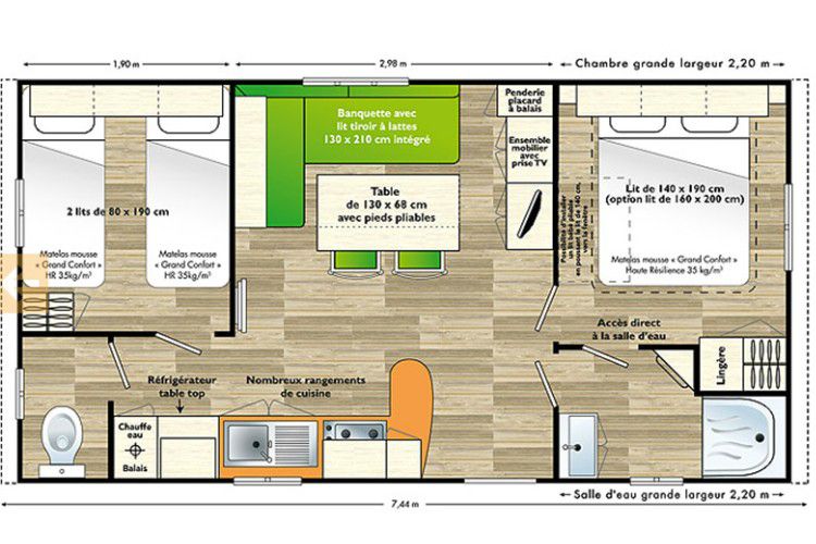 Mobil home - Terrasse - 6 pers. - 32m2 - clim - TV