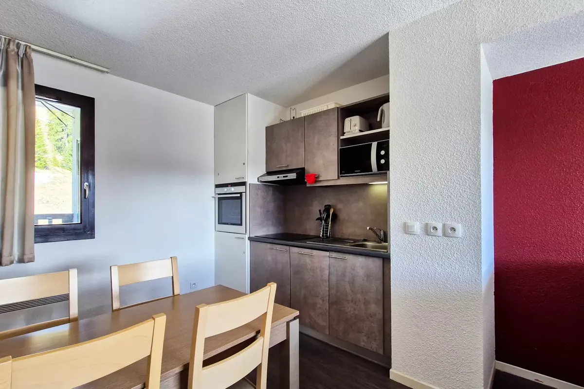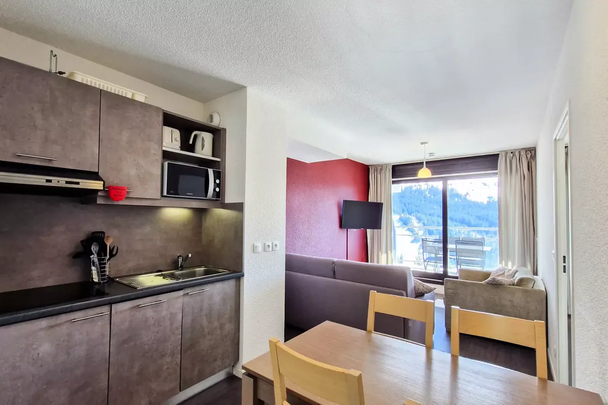 La Résidence Les Terrasses de Véret offre un cadre chaleureux et confortable pour un séjour au ski. Les appartements, décorés dans un style savoyard, disposent de balcons privatisés, parfaits pour admirer les paysages enneigés. En hiver, la résidence propose des services adaptés aux skieurs : local à skis, navette gratuite vers le centre de Flaine, et accès direct aux pistes. À proximité, le centre de Flaine Forum offre une variété de commerces, restaurants et bars, permettant de découvrir la gastronomie locale et de profiter de l'ambiance montagnarde.