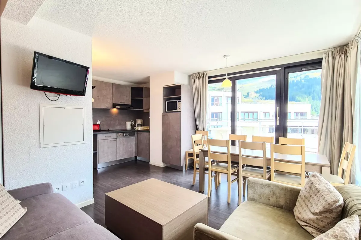 La Résidence Les Terrasses de Véret se compose de plusieurs chalets traditionnels en bois, intégrés harmonieusement dans le paysage alpin. Chaque appartement dispose d'un balcon privatif, idéal pour savourer un petit-déjeuner en plein air ou se détendre après une journée d'activités. En été, la résidence propose des services adaptés aux familles : piscine extérieure, aire de jeux pour enfants et espaces de détente. À proximité, le centre de Flaine Forum offre une variété de commerces, restaurants et bars, permettant de découvrir la gastronomie locale et de profiter de l'ambiance montagnarde. Les marchés locaux, organisés régulièrement, sont l'occasion parfaite pour déguster des produits du terroir et s'imprégner de la culture alpine.