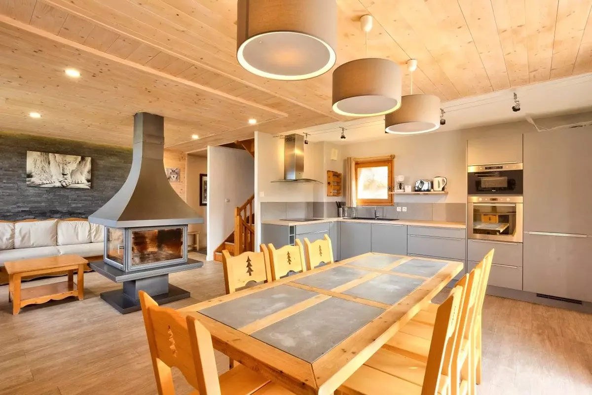 La Résidence Les Chalets du Praz se distingue par son architecture typiquement montagnarde. Les constructions en bois et pierres rappellent les chalets traditionnels savoyards, tout en offrant le confort attendu pour des vacances réussies. À l'intérieur, chaque logement conjugue authenticité et fonctionnalité. On y trouve un coin salon, souvent agrémenté d'une cheminée ou d'un poêle selon les unités, invitant à des soirées conviviales et chaleureuses après une journée passée dans le froid. Les cuisines sont entièrement équipées, avec réfrigérateur, micro-ondes, plaques de cuisson et lave-vaisselle, permettant aux familles comme aux groupes d'amis de préparer des repas sur place en toute autonomie. Les chambres et espaces de couchage ont été conçus pour garantir confort et intimité, tandis que les salles de bains privatives, parfois complétées par des toilettes séparées, ajoutent un vrai plus en termes de praticité. Côté services, la résidence propose des prestations appréciées des vacanciers. Un local à skis est mis à disposition pour stocker le matériel en toute sécurité. La location de matériel de glisse peut être effectuée directement sur place, tout comme l'achat de forfaits de ski, un gain de temps non négligeable en période de forte affluence. L'accès rapide aux remontées mécaniques est également cité comme un atout majeur, permettant d'optimiser le temps passé sur les pistes. À proximité immédiate, commerces et restaurants complètent l'offre, rendant le quotidien pratique et agréable.