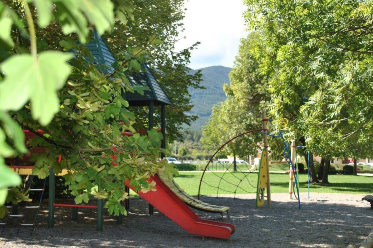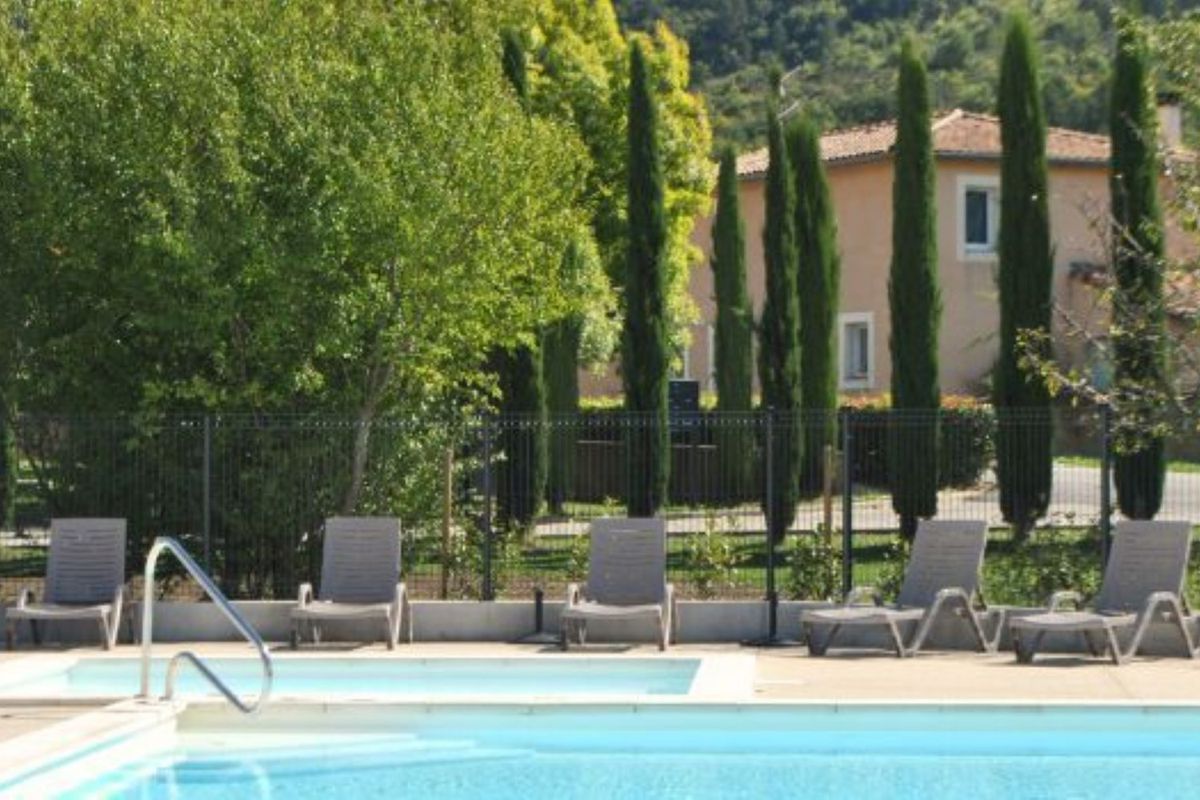 Le Hameau des Sources se compose de plusieurs bâtiments répartis autour de jardins, de massifs et d'espaces verts typiquement provençaux. Les logements peuvent accueillir maximum 6 personnes, et offrent chacun un coin cuisine, un séjour lumineux et une terrasse ou un balcon permettant de profiter pleinement du climat estival. La luminosité intérieure et les vues sur le village ou les collines créent un cadre agréable où l'on aime se retrouver après une journée d'activité. La piscine extérieure constitue l'un des atouts majeurs en été : elle permet de se rafraîchir, de se détendre ou de partager un moment en famille.