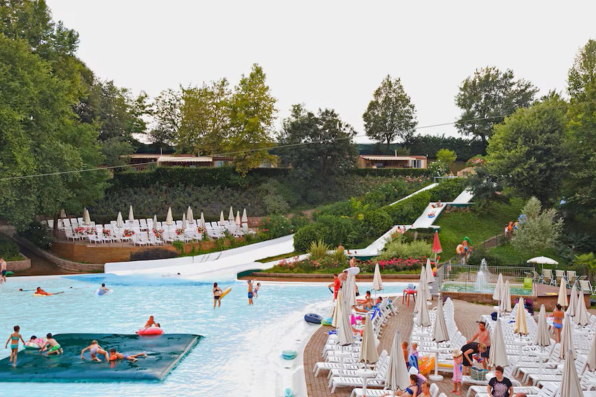 Situé à Valeggio sul Mincio, entre collines et rives paisibles, le hu Altomincio Village bénéficie d'un cadre naturel exceptionnel aux portes du lac de Garde. Ce village de vacances s'inscrit dans un environnement typiquement vénitien, fait de vallons verdoyants et de pistes cyclables longeant la rivière du Mincio. En quelques coups de pédale, vous rejoignez Peschiera del Garda et ses charmantes ruelles, ou Borghetto sul Mincio, classé parmi les plus beaux villages d'Italie. L'accès est simple, que vous arriviez depuis Vérone, Mantoue ou les bords du lac. Cette localisation centrale séduit autant les familles en quête de nature que les voyageurs avides de découvertes culturelles et gastronomiques. Le hu Altomincio Village offre ainsi un point de départ privilégié pour rayonner entre culture, détente et plaisirs aquatiques tout en profitant d'un environnement préservé, propice au ressourcement.